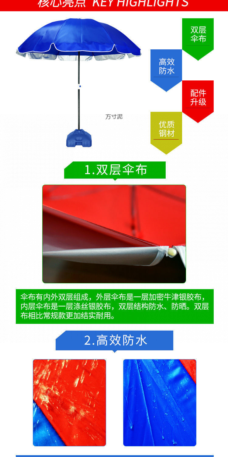 야외 노점 우산, 두꺼운 삼륜차 특수 노점 우산, 대형 우산, 파라솔, 자외선 차단 이중 우산