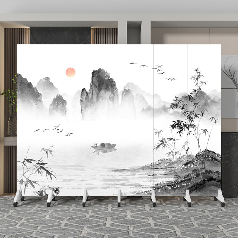 Qianli Jiangshan 도서 파티션 스크린 사무실 접이식 찻집 호텔 중국 풍경화 스크린 파티션 거실