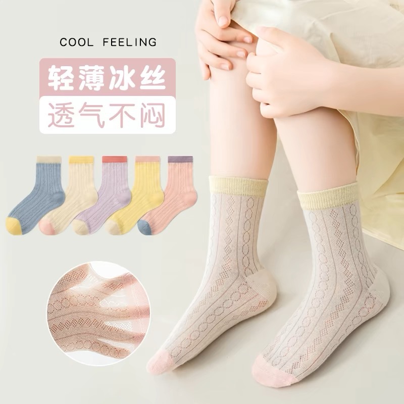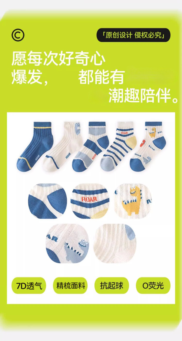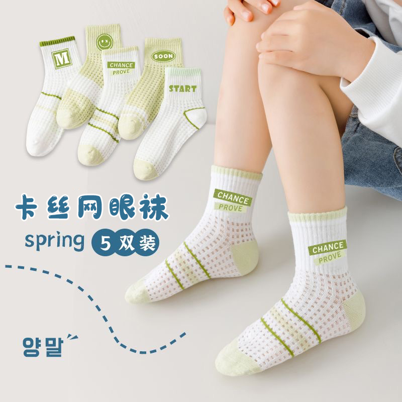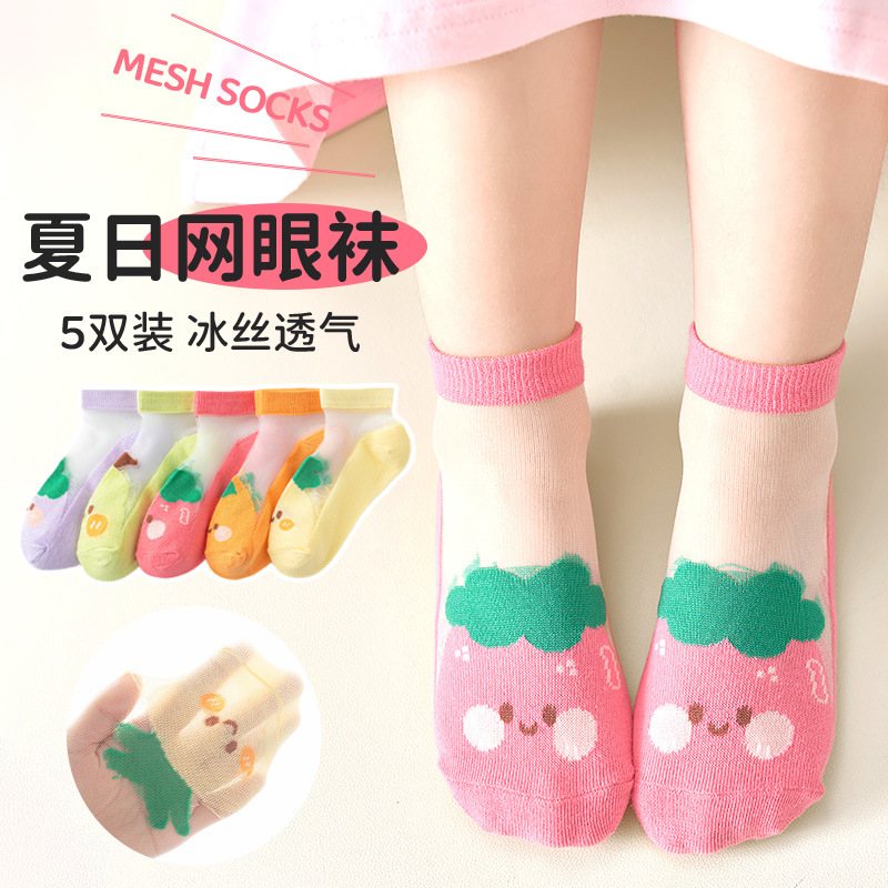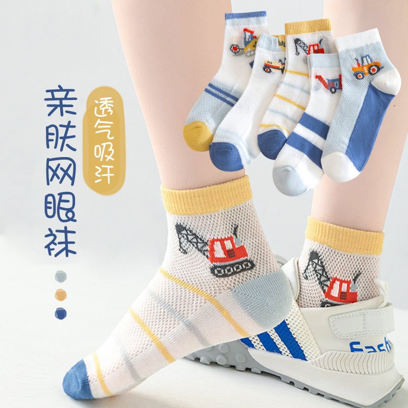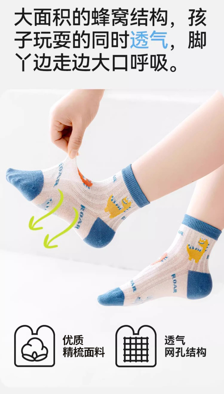 봄과 여름 초박형 어린이 양말 소년 슈퍼 귀여운 작은 공룡 통기성 메쉬 학생 만화 귀여운 튜브 양말