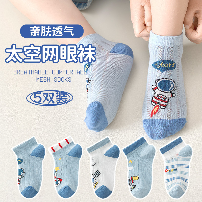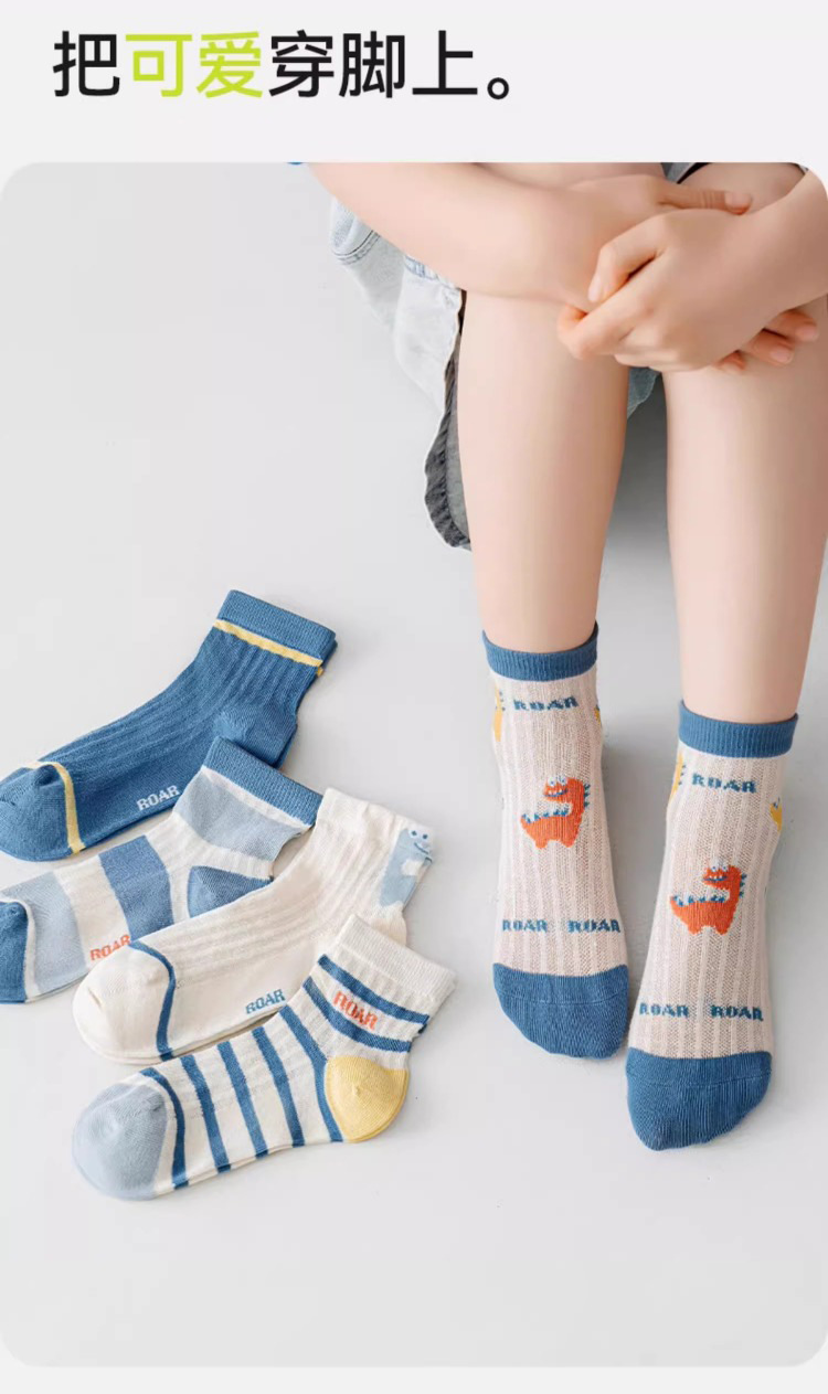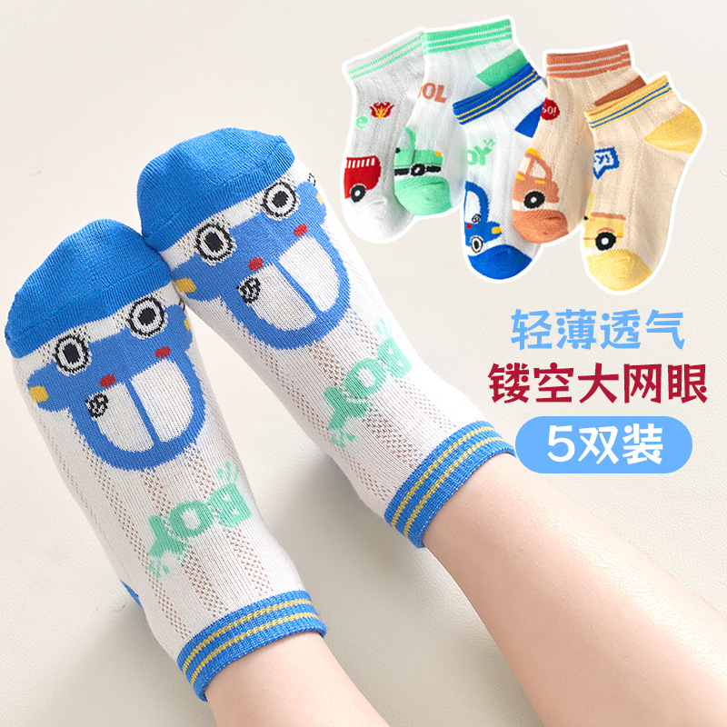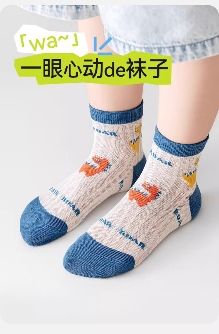 봄과 여름 초박형 어린이 양말 소년 슈퍼 귀여운 작은 공룡 통기성 메쉬 학생 만화 귀여운 튜브 양말스토어 가기