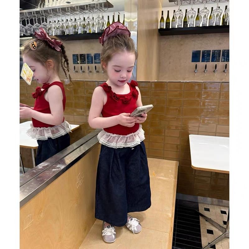 시원하고 붉어지는 소녀 세트 2025 여름 외국 스타일 어린이 도파민 캐미솔 세트 착용스토어 가기