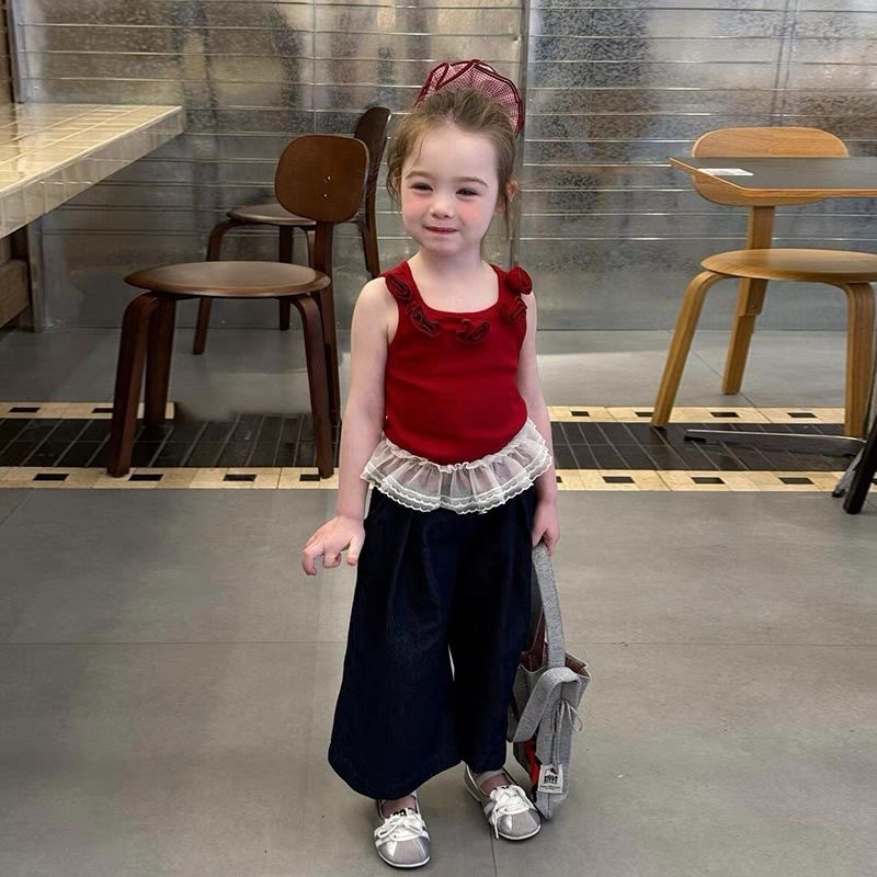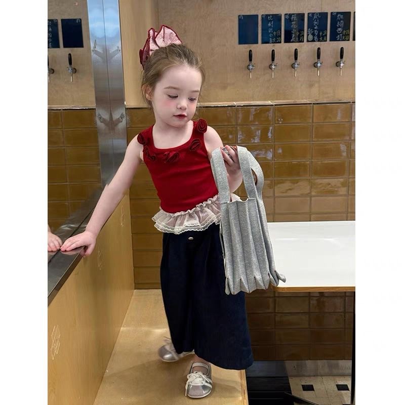 시원하고 붉어지는 소녀 세트 2025 여름 외국 스타일 어린이 도파민 캐미솔 세트 착용