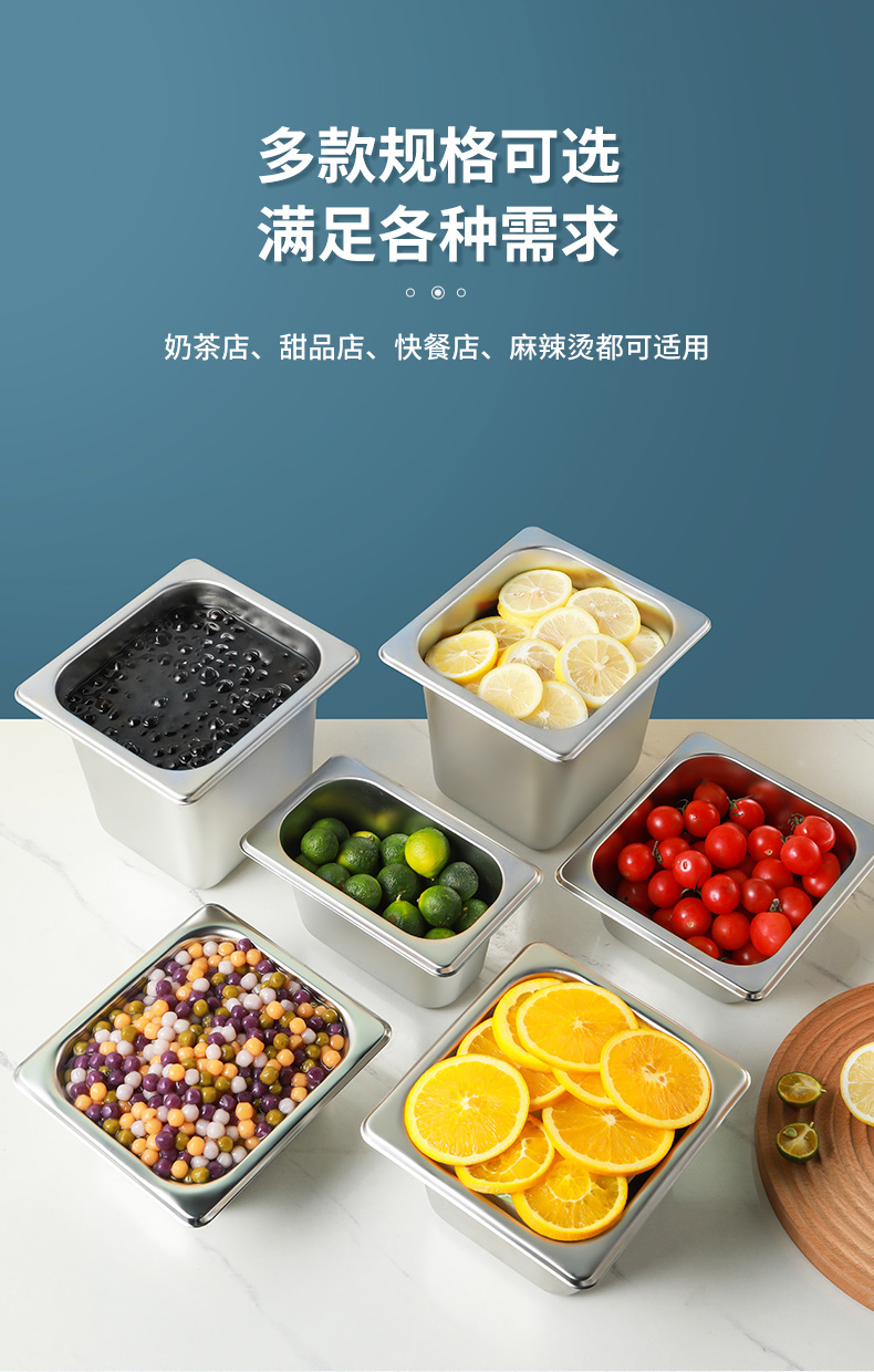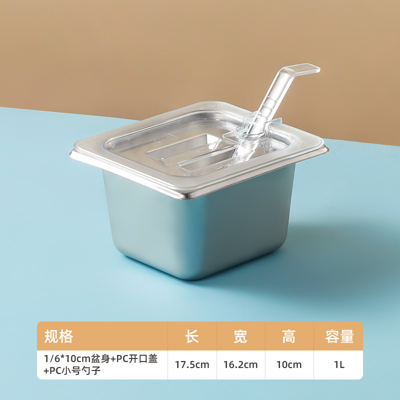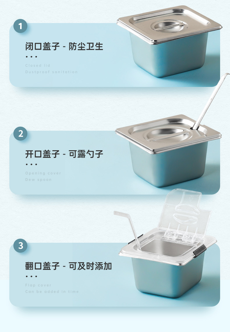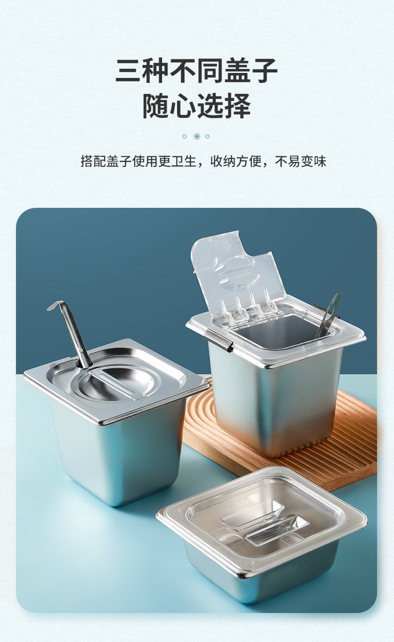 스테인레스 스틸 부분 분지 상업용 직사각형 잼 소스 박스 뚜껑 진주 작은 재료 분획 상자 우유 차 가게스토어 가기