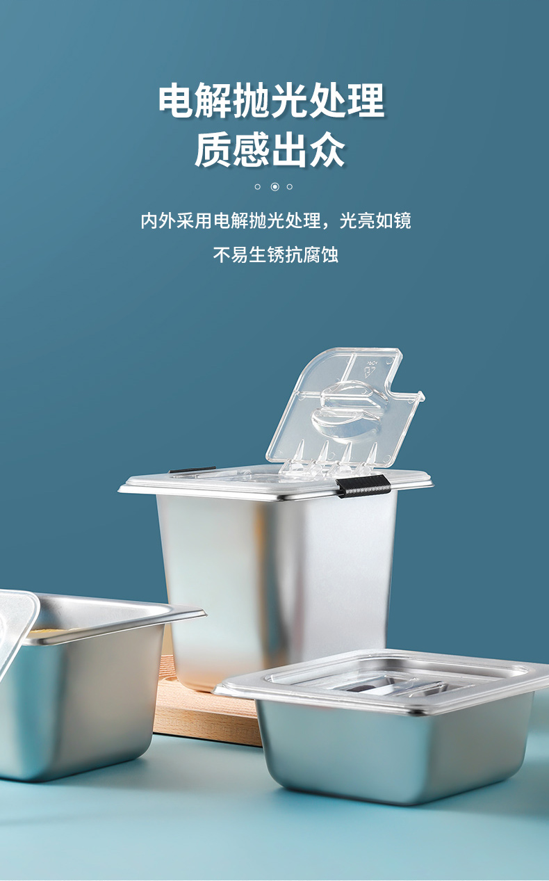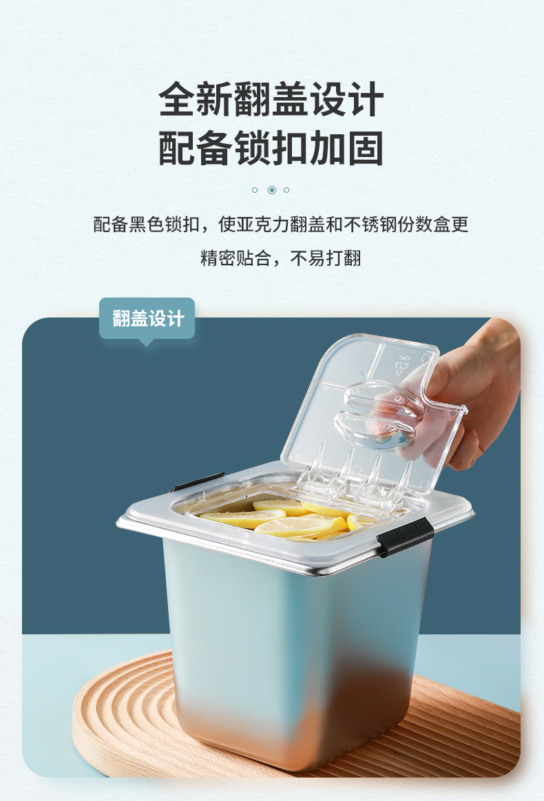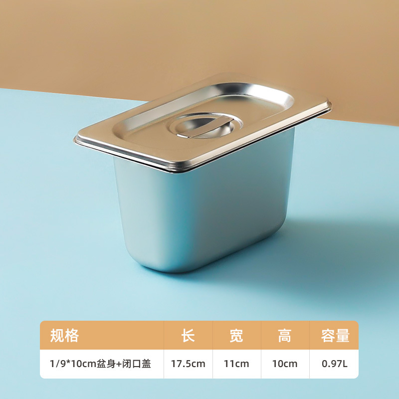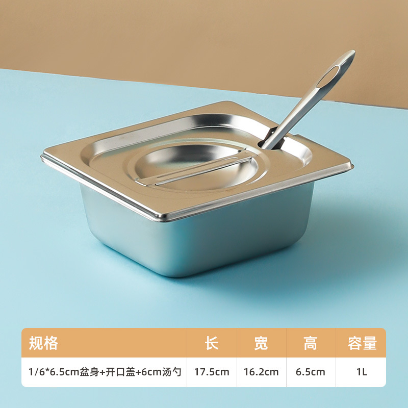 스테인레스 스틸 부분 분지 상업용 직사각형 잼 소스 박스 뚜껑 진주 작은 재료 분획 상자 우유 차 가게스토어 가기