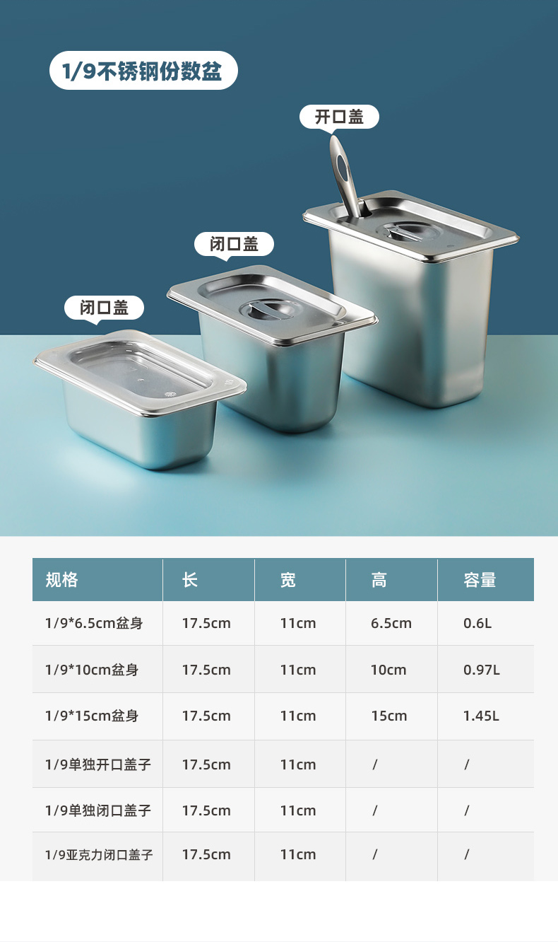 • 1/9*15cm 세면대 + 개방형 뚜껑 + 30cc 온스 스푼✓✓