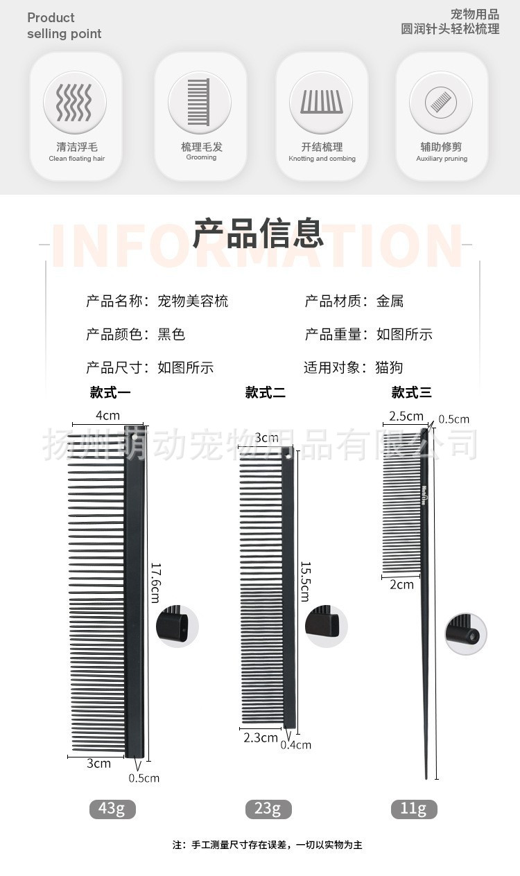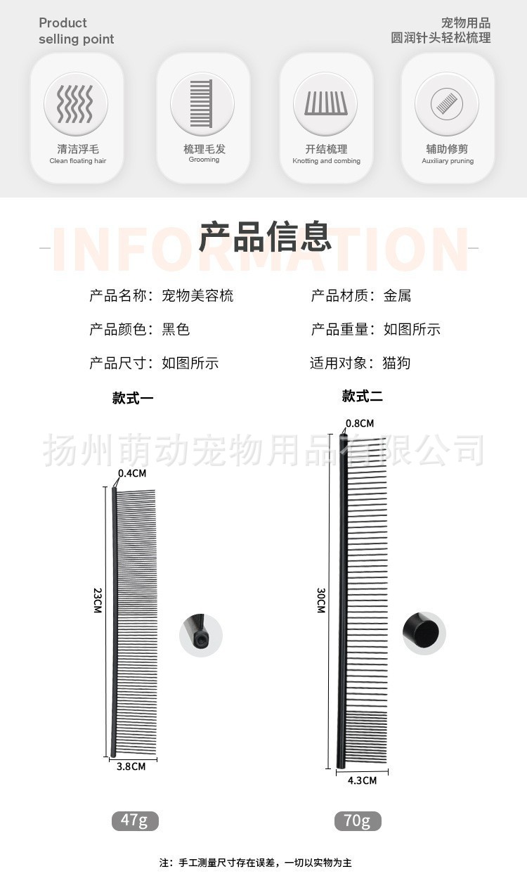 跨境热销现货宠物梳猫咪挑毛排梳狗狗拉毛开结美容梳直排梳可定制