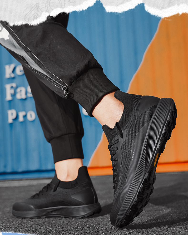 남성 신발 여름 2025 새로운 야외 경량 하이킹 신발 통기성 비행 짠 메쉬 신발 남성 두꺼운 밑창 착용 방지 하이킹 신발
