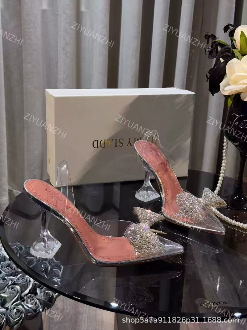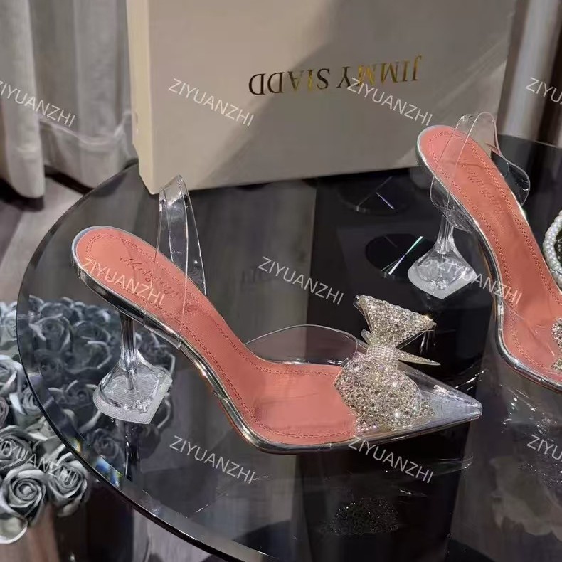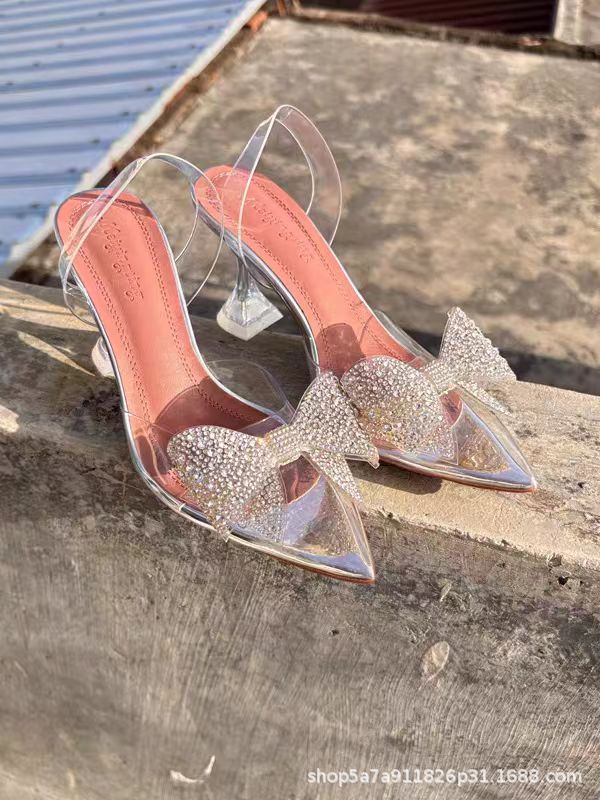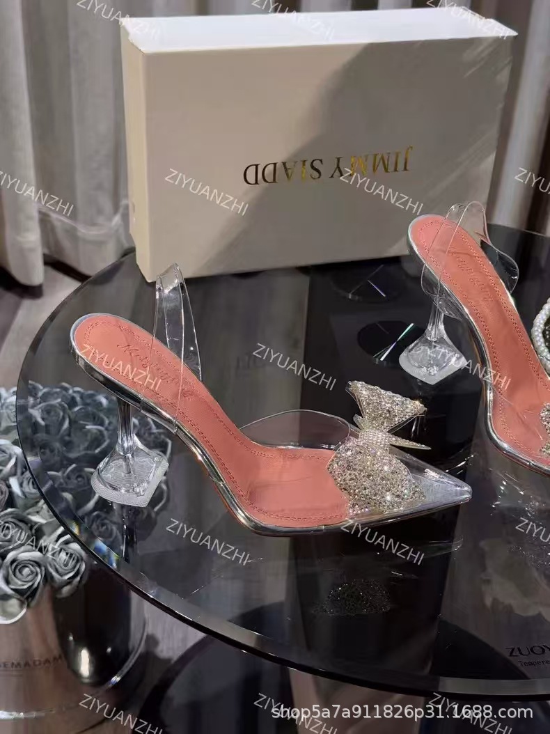 가벼운 럭셔리 투명 뾰족한 하이힐 와인 컵 힐 새 크리스탈 활 우아한 신부 들러리 웨딩 신발 샌들 페어리 스타일