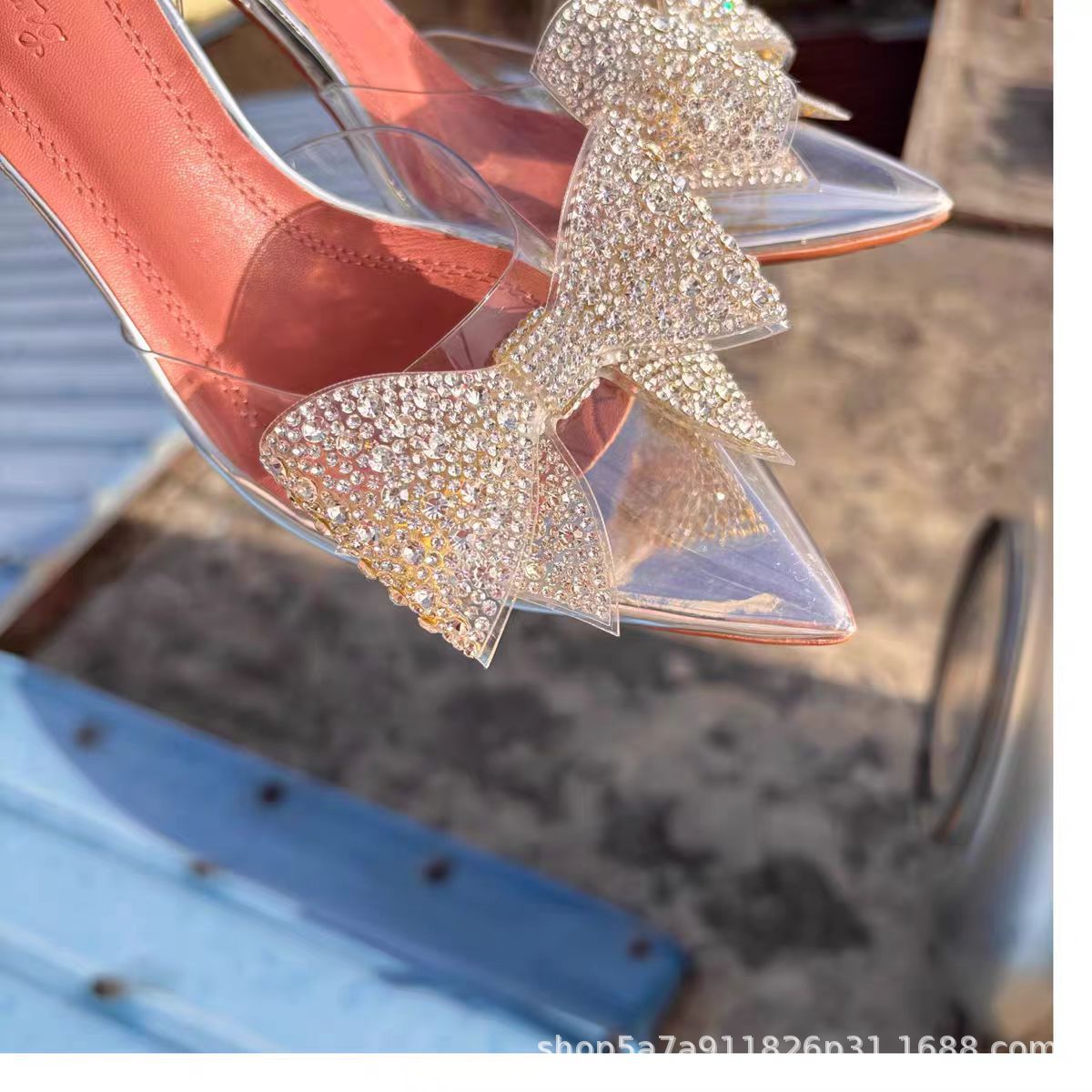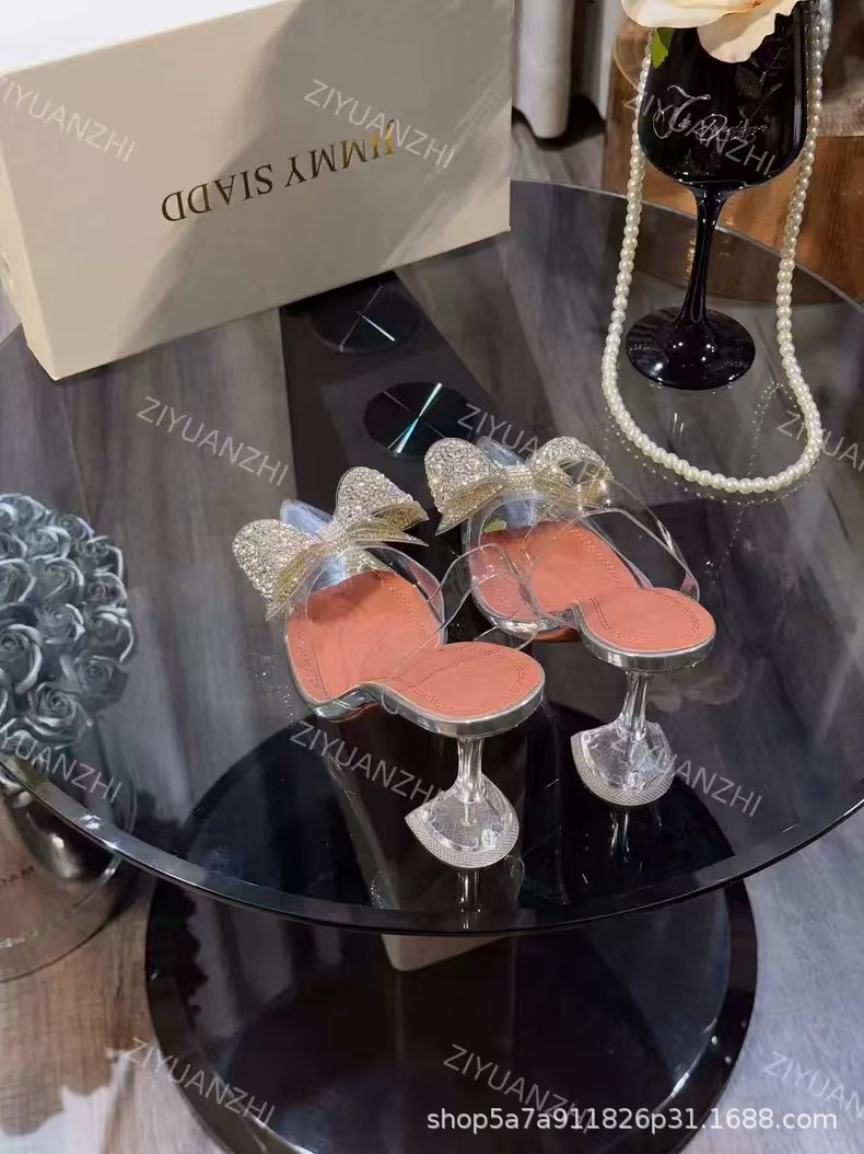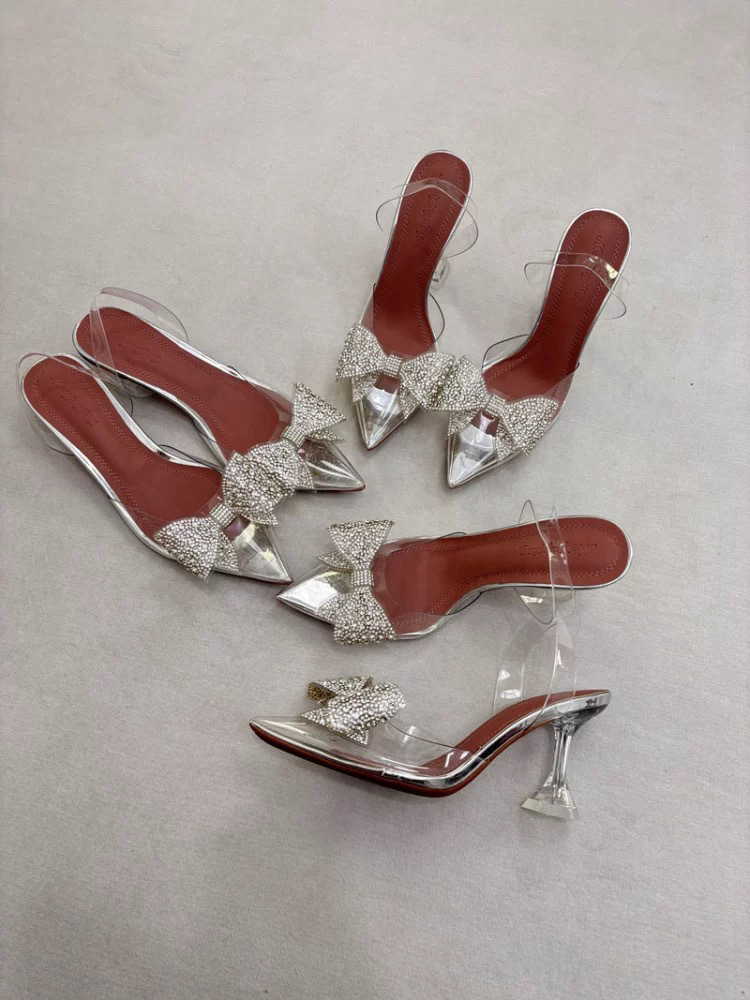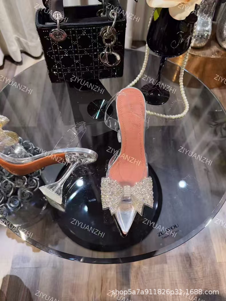 가벼운 럭셔리 투명 뾰족한 하이힐 와인 컵 힐 새 크리스탈 활 우아한 신부 들러리 웨딩 신발 샌들 페어리 스타일