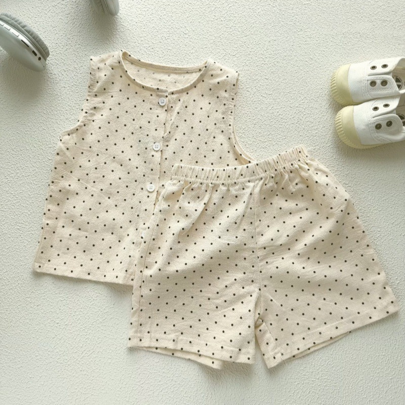새로운 한국 어린이 여름 세트 소년 소녀 코튼 린넨 얇은 투피스 아기 한국 세트