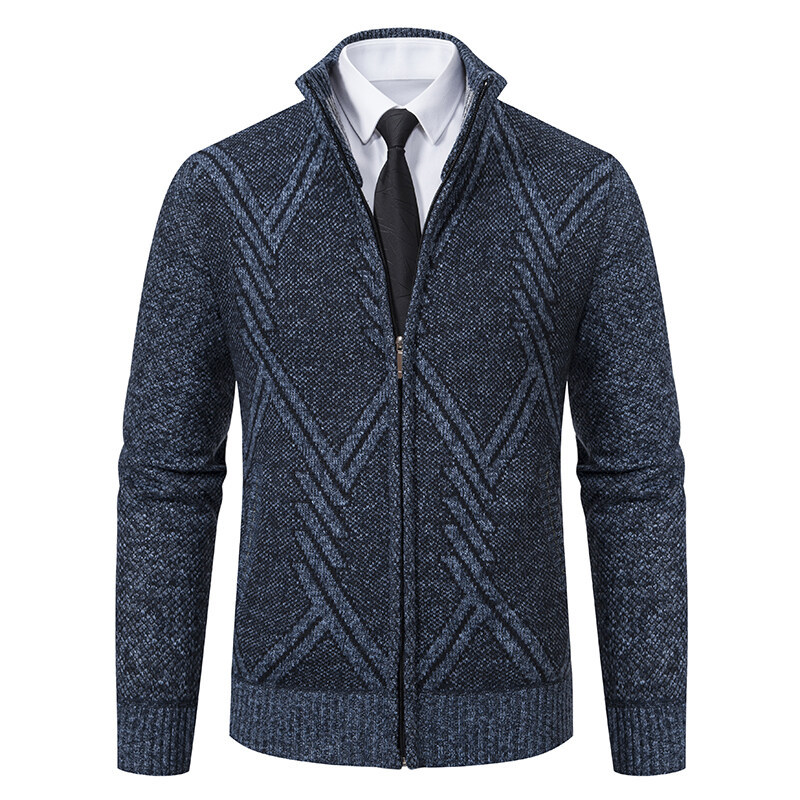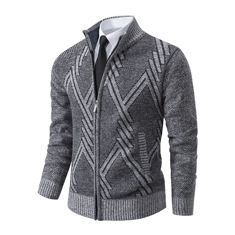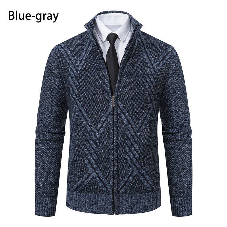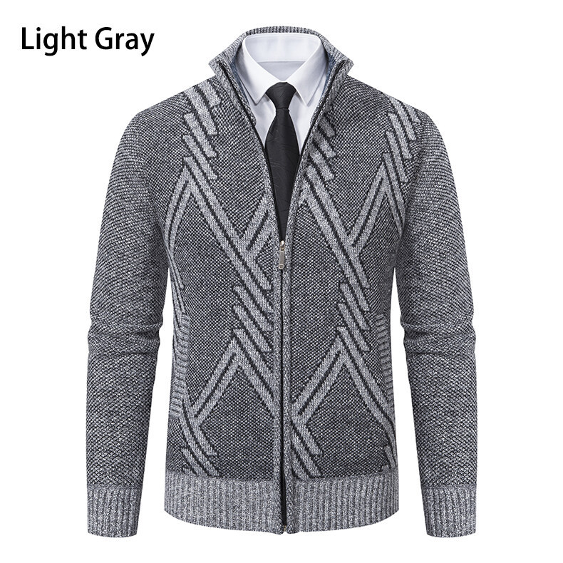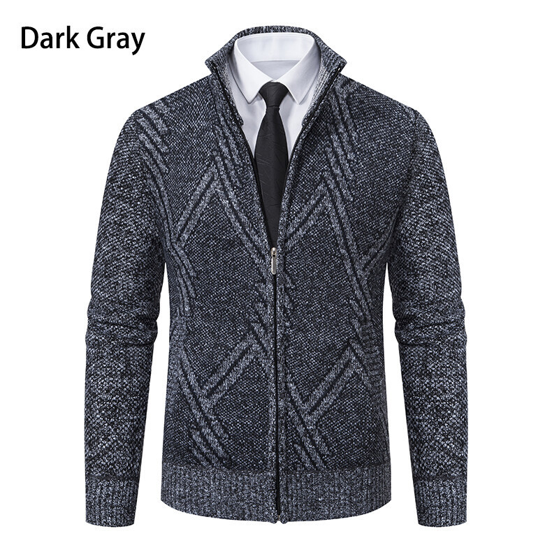2025 새로운 가을, 겨울 남성 스탠드 업 칼라 스웨터 대외 무역 카디건 플러스 벨벳 두꺼운 스웨터 패션 캐주얼 남성 자켓