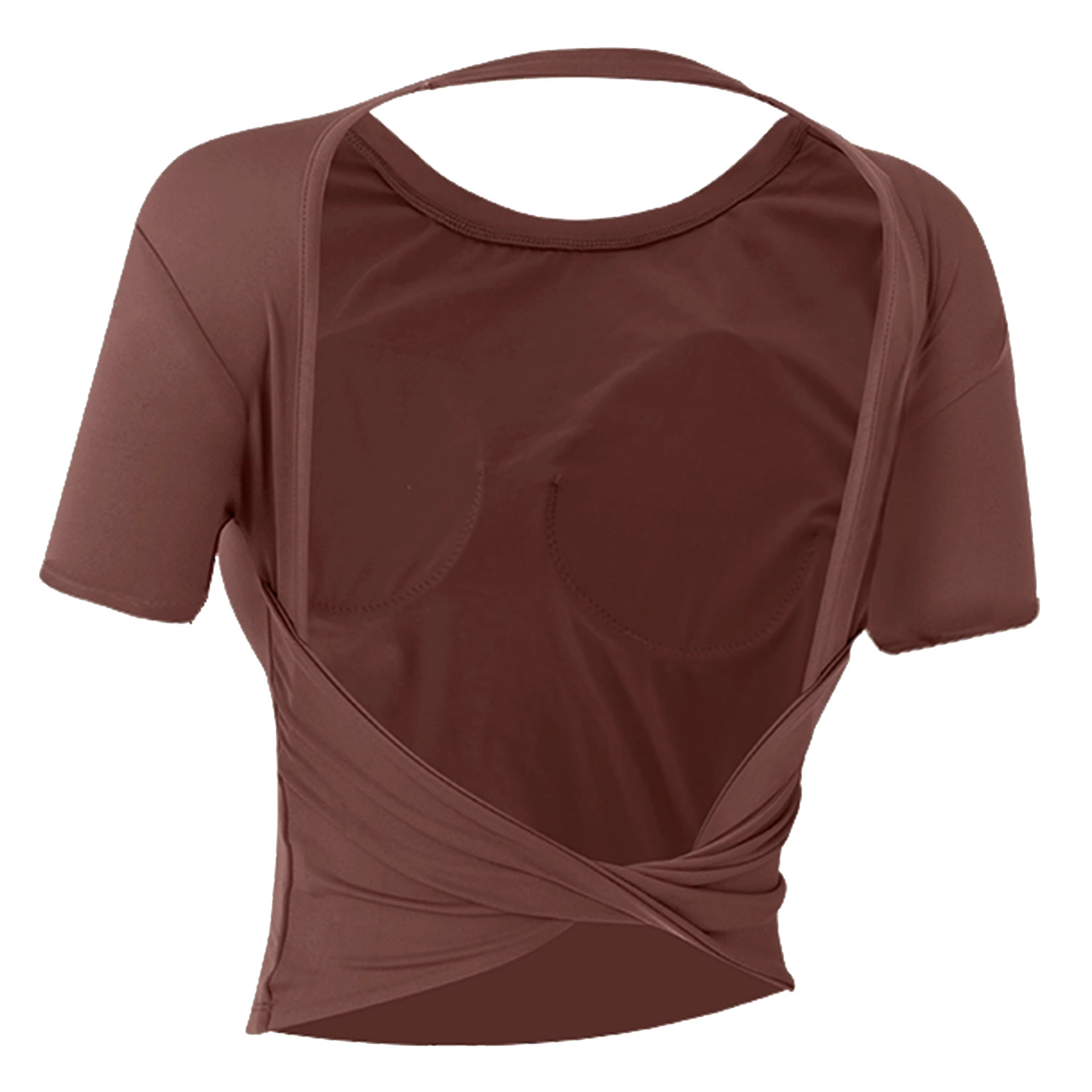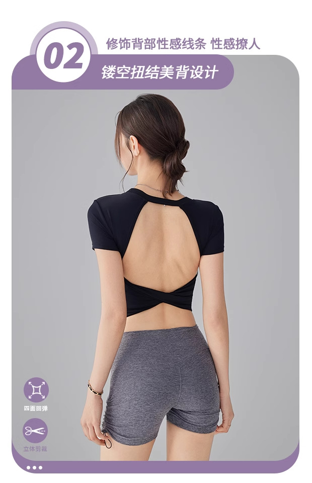 Songzhan 섹시 할로우 스포츠 탑 여성용 원피스 속건성 아름다운 등 피트니스 요가웨어 반팔 티셔츠 아우터 여름
