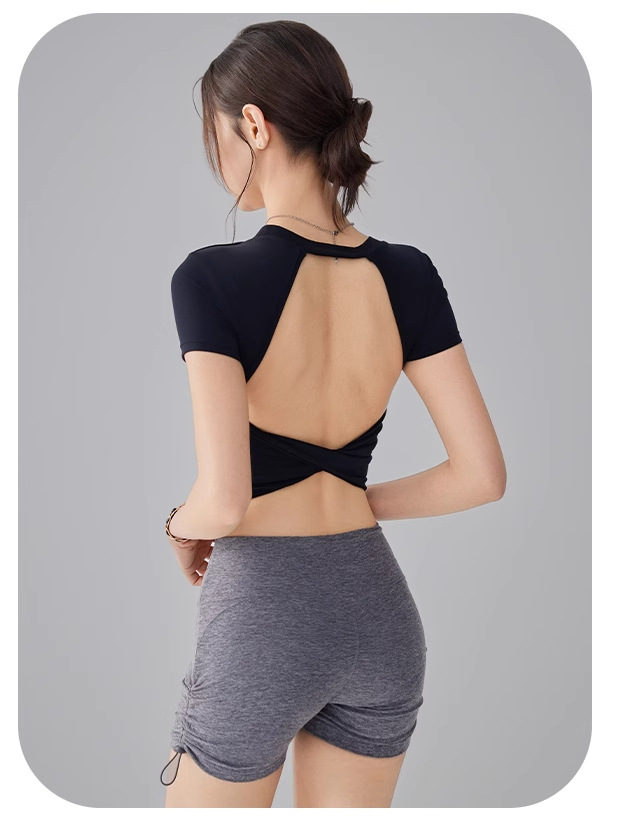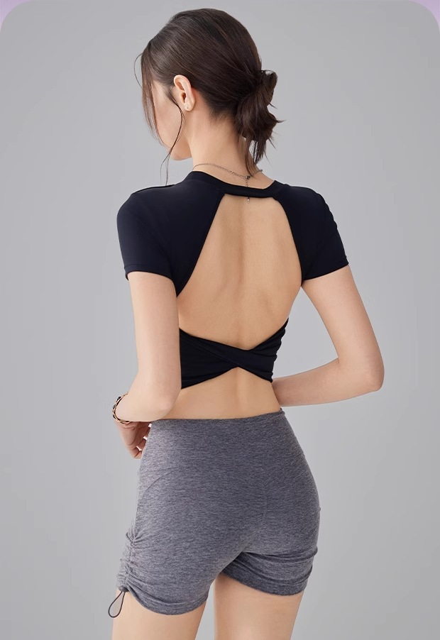 Songzhan 섹시 할로우 스포츠 탑 여성용 원피스 속건성 아름다운 등 피트니스 요가웨어 반팔 티셔츠 아우터 여름스토어 가기