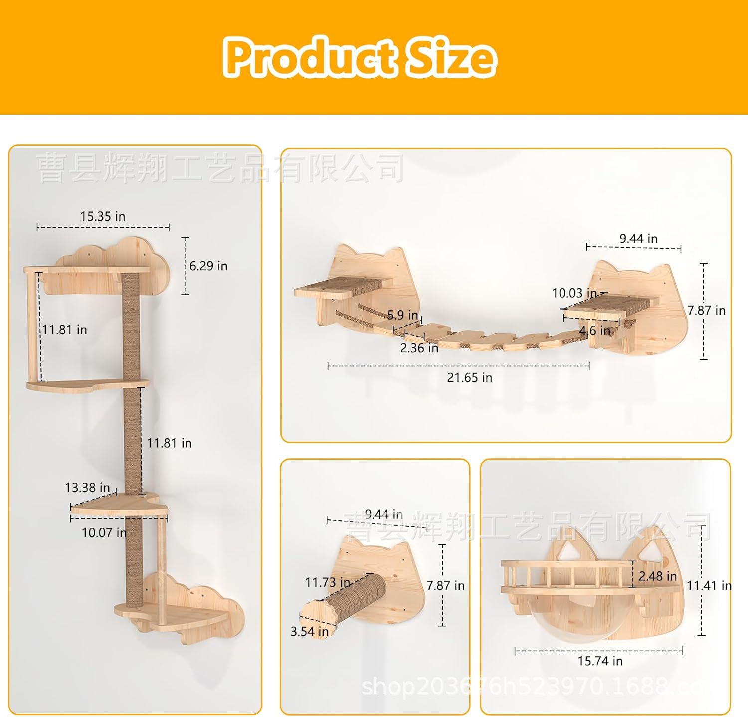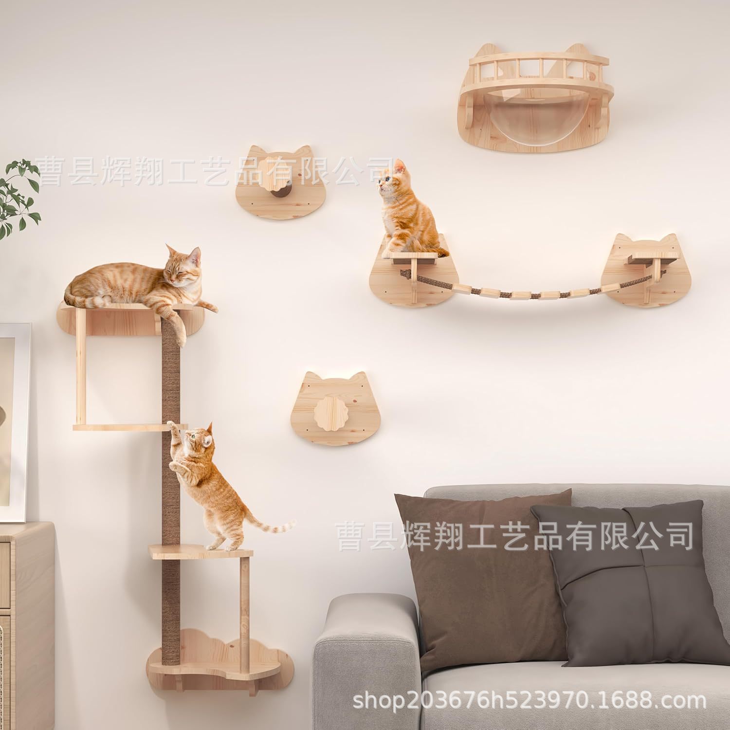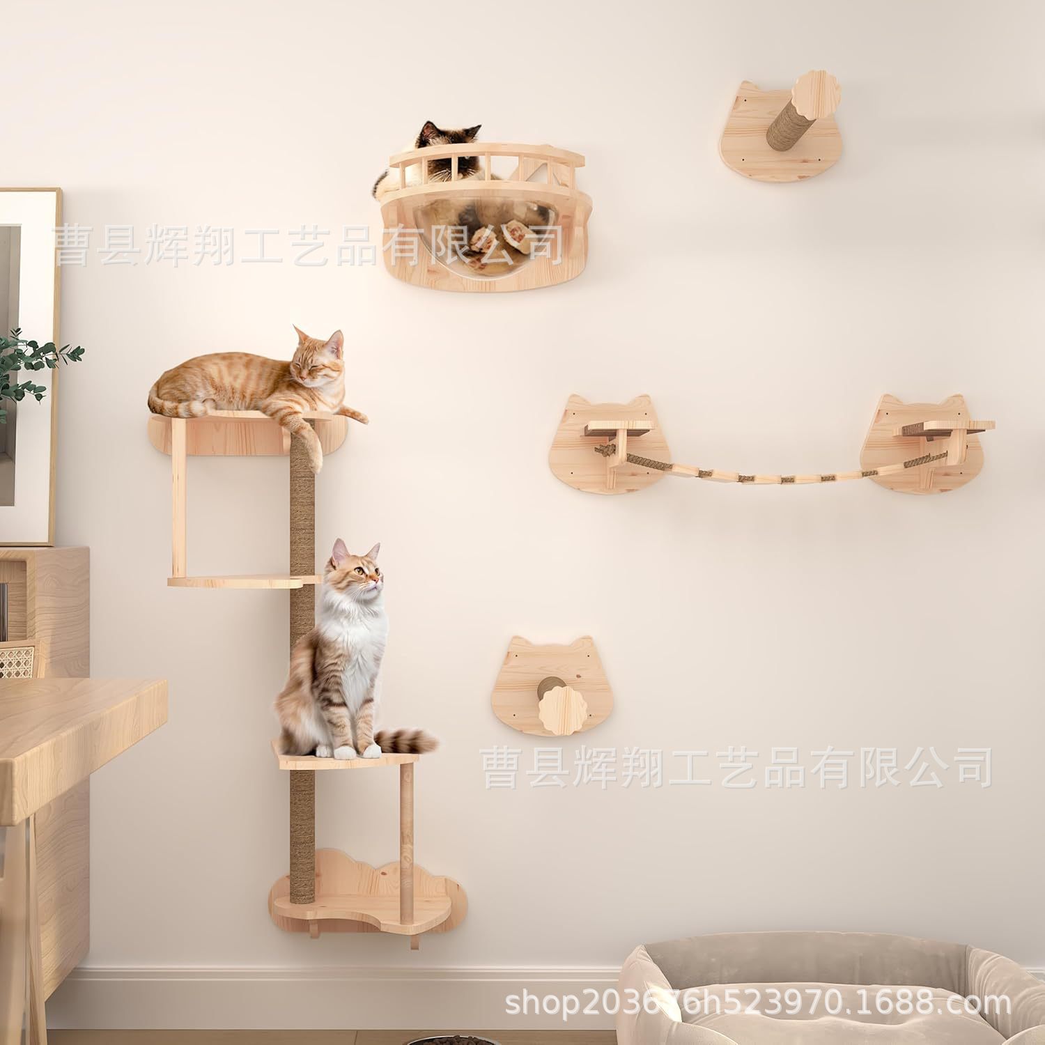 나무 고양이 클라이밍 프레임, 고양이 스크래치 컬럼, 고양이 둥지, 일체형 벽걸이형 고양이 클라이밍 프레임, 고양이 지루함 해소 장난감 거주 선반