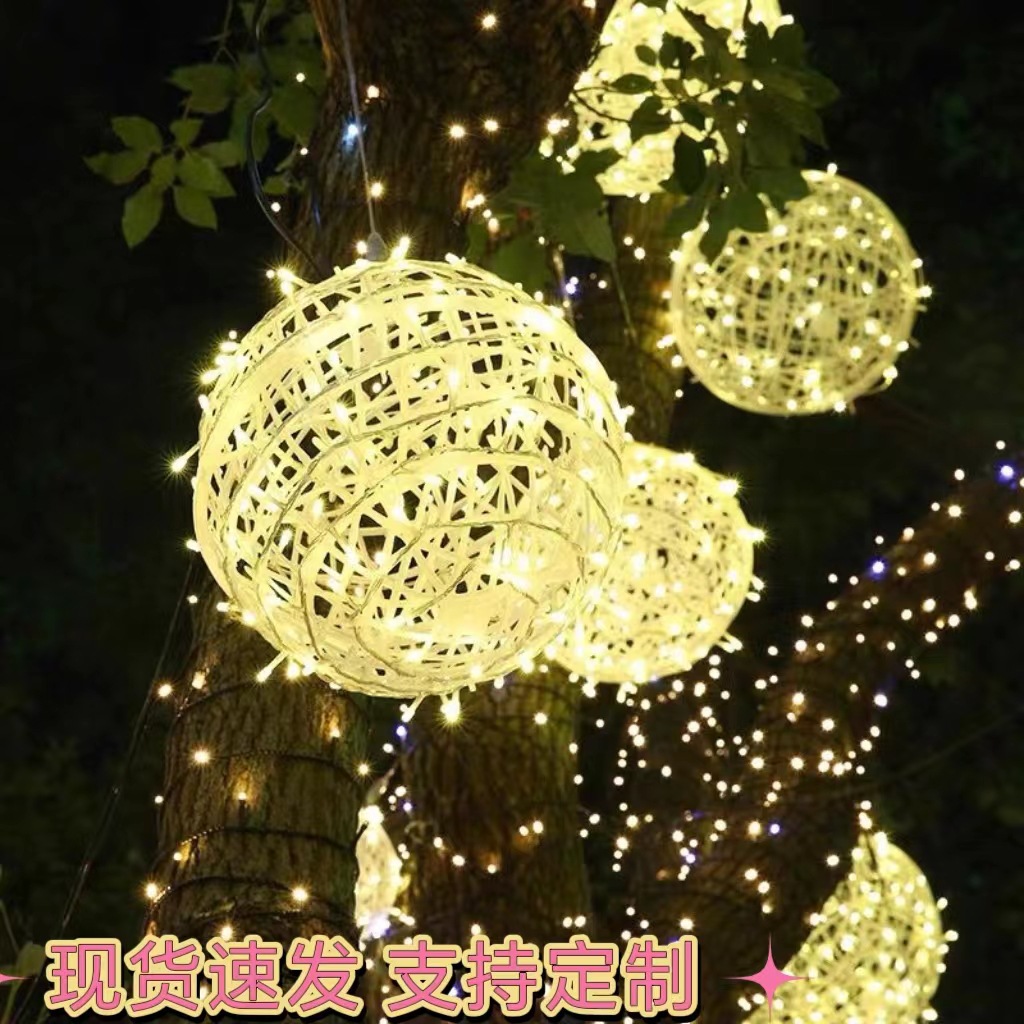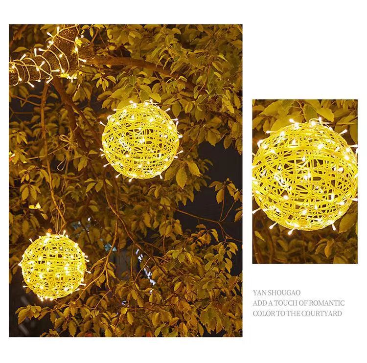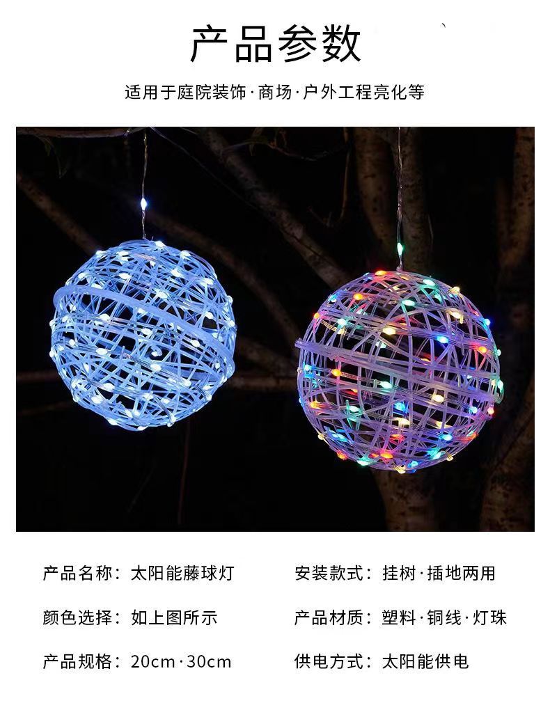LED 태양 광 발전 등나무 공 램프 1-5 걸이형 나무 공 장식 트리 램프 야외 휴일 안뜰 분위기 조경 램프