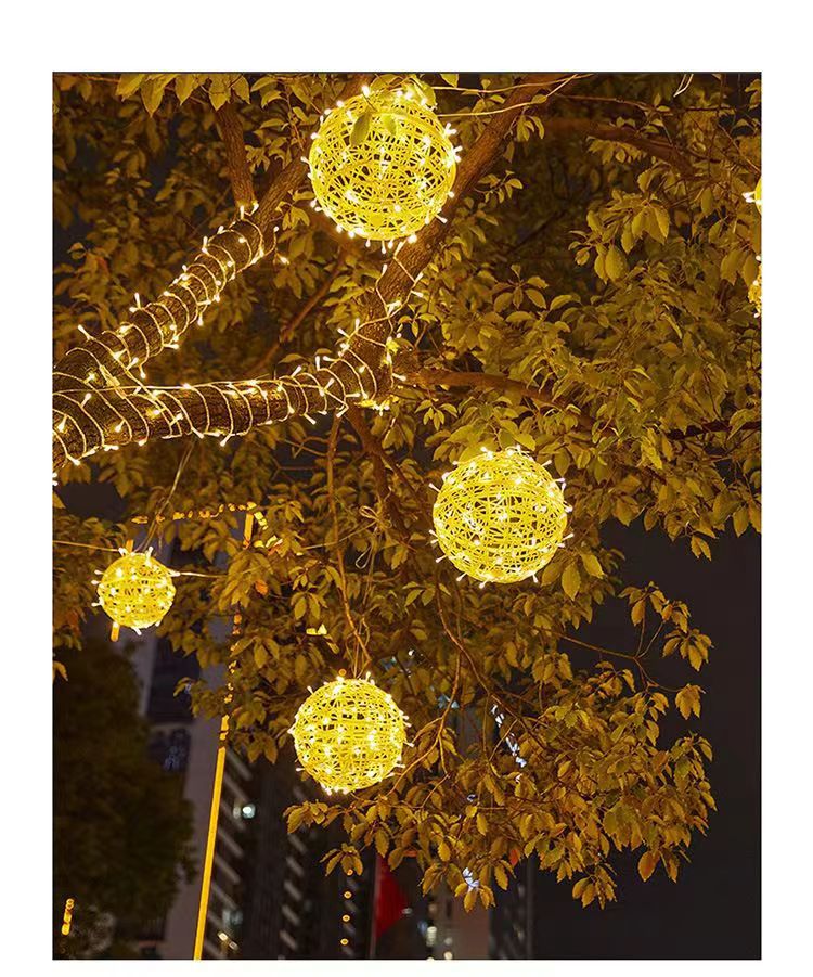 LED 태양 광 발전 등나무 공 램프 1-5 걸이형 나무 공 장식 트리 램프 야외 휴일 안뜰 분위기 조경 램프스토어 가기
