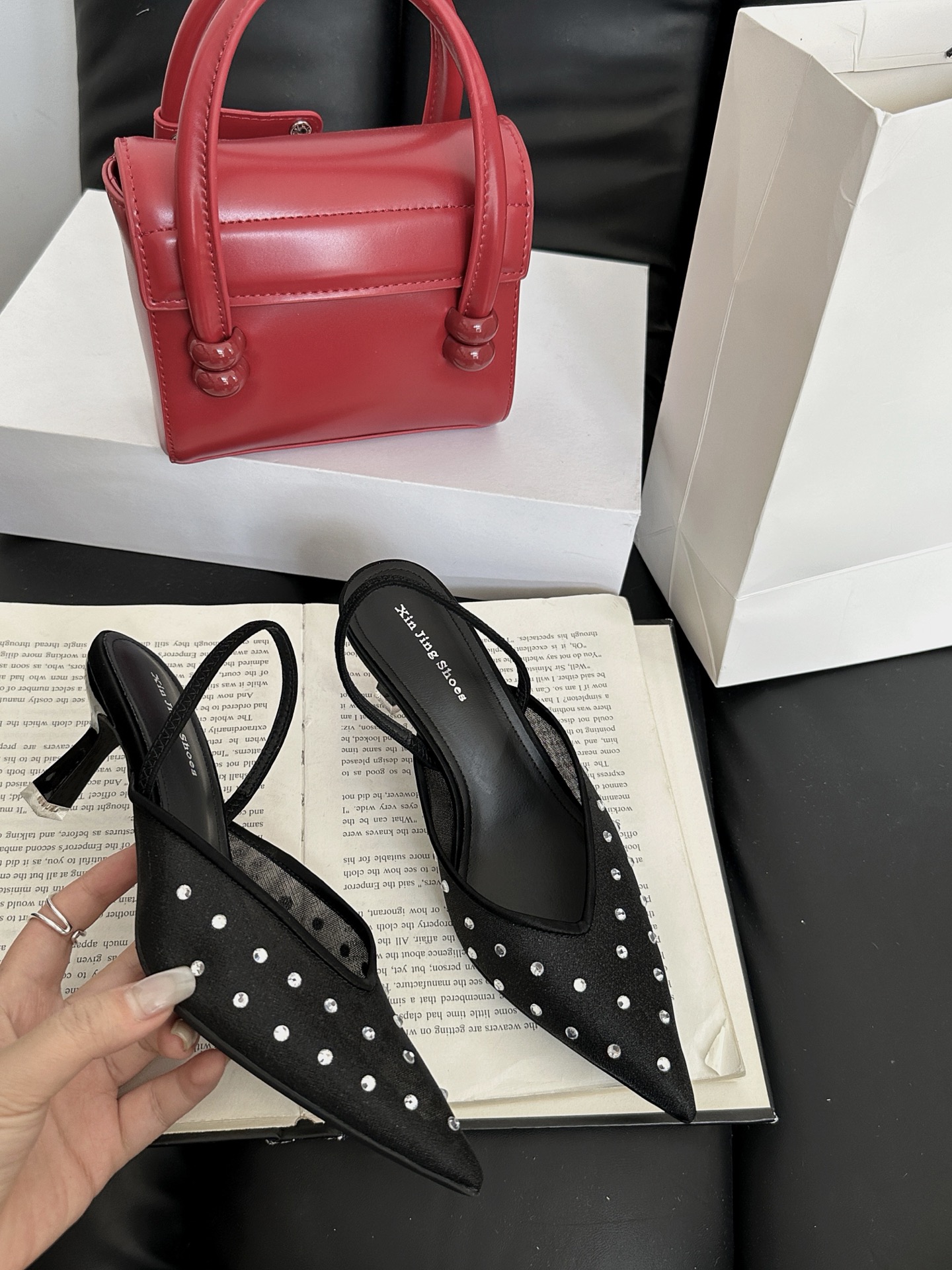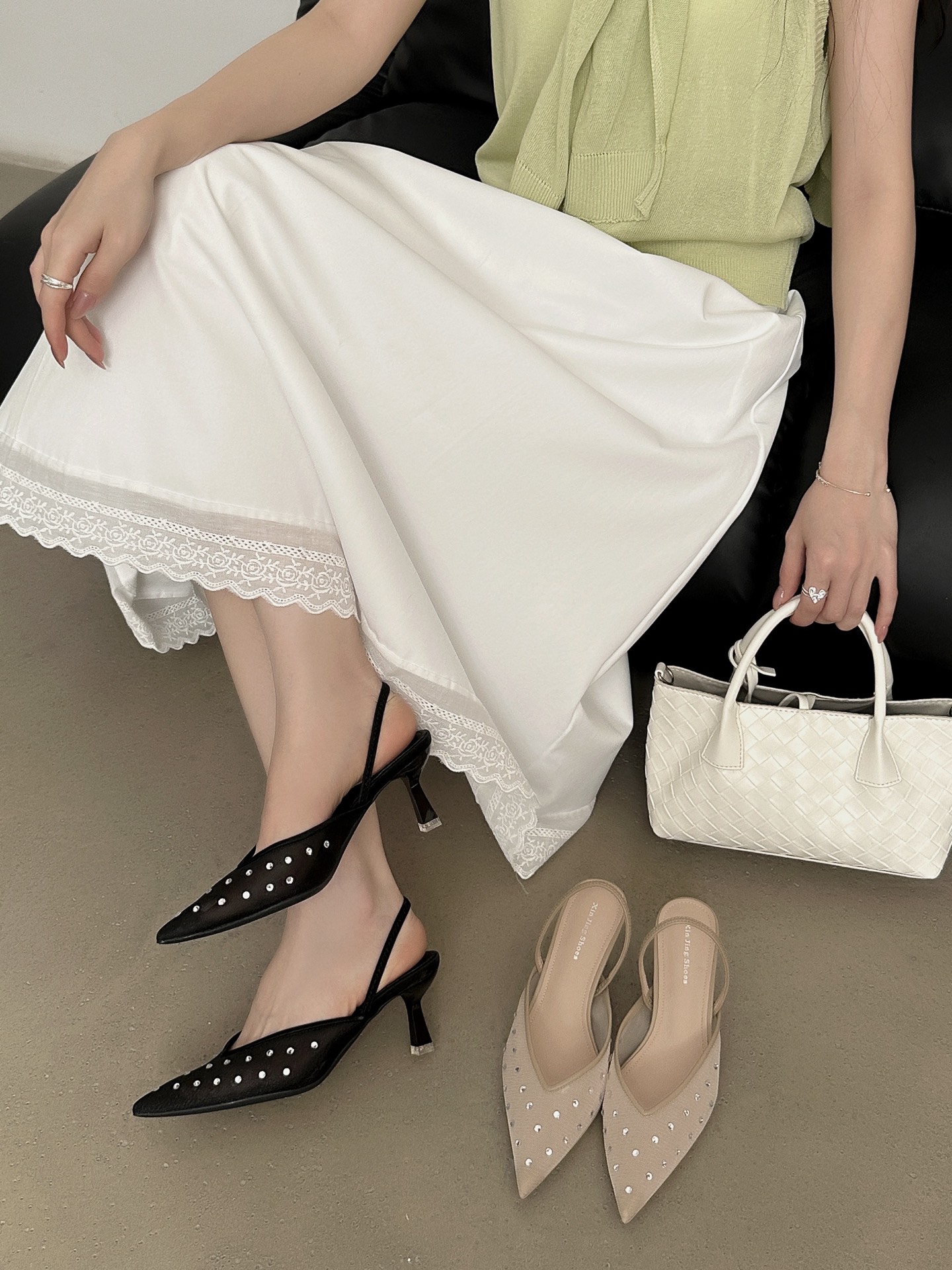 2025 년 여름 여성을위한 새로운 프랑스 스타일 요정 뾰족한 하이힐 메쉬 라인스톤 샌들