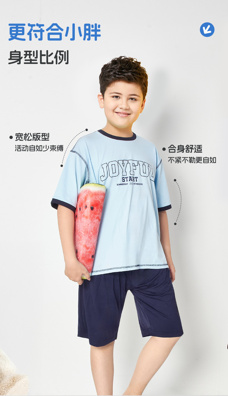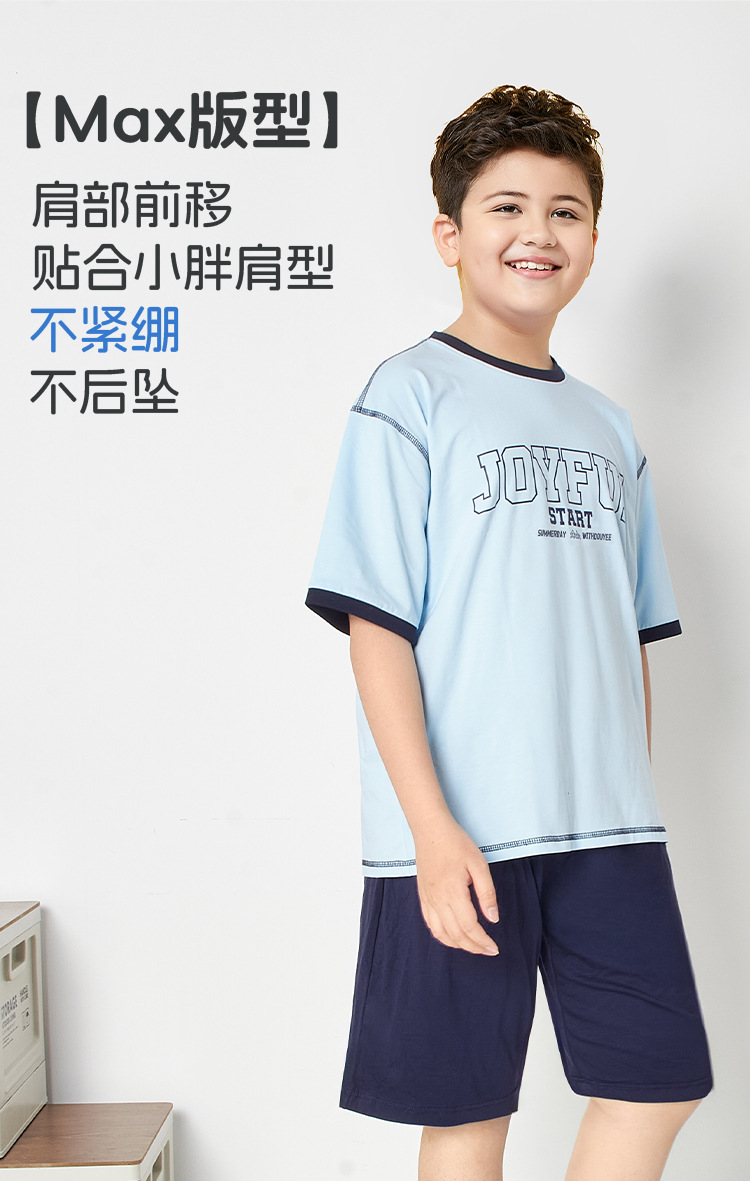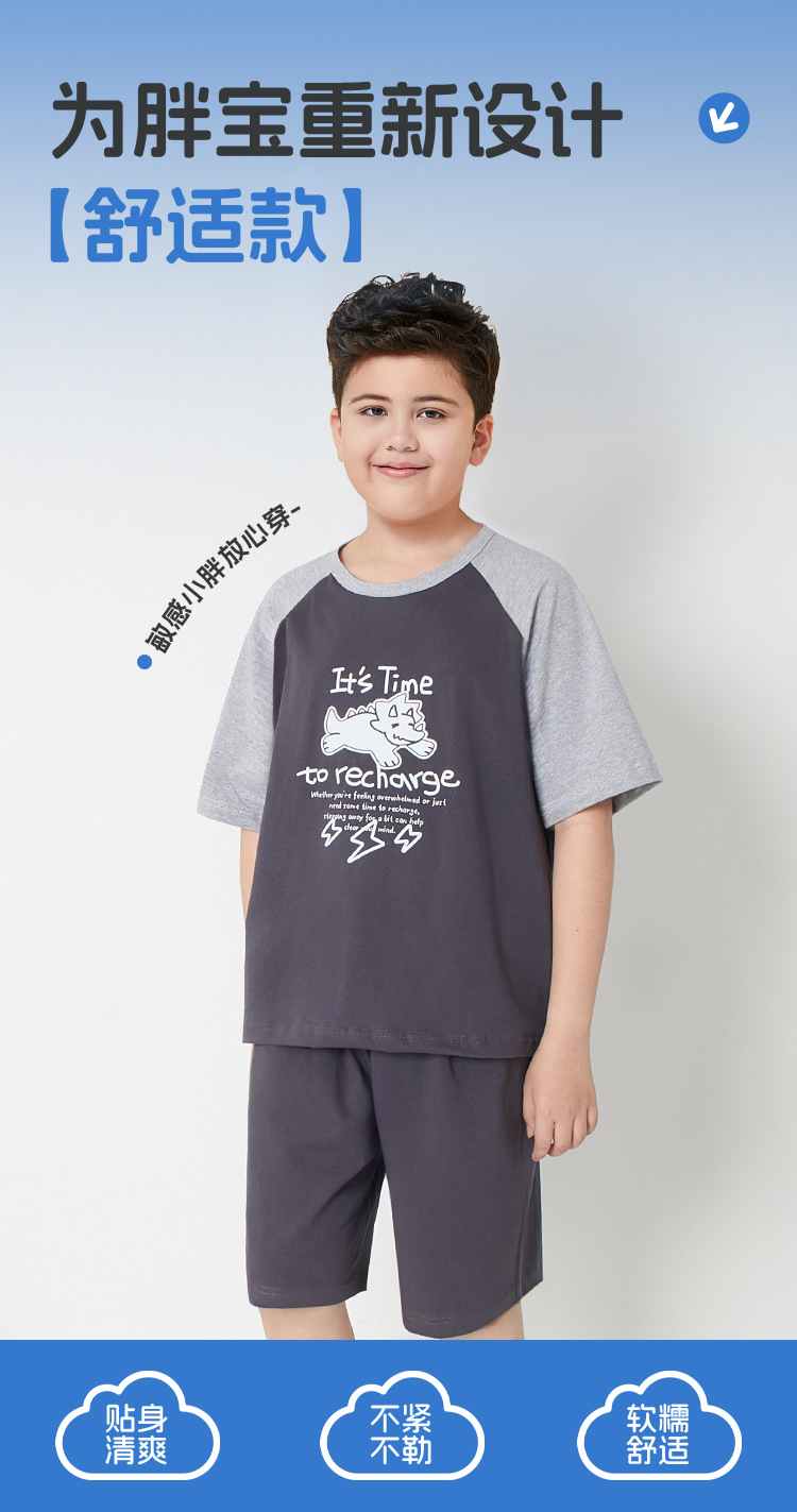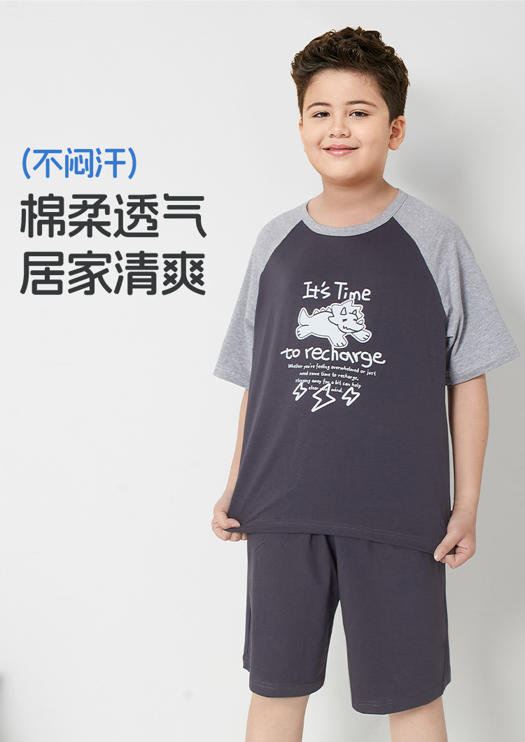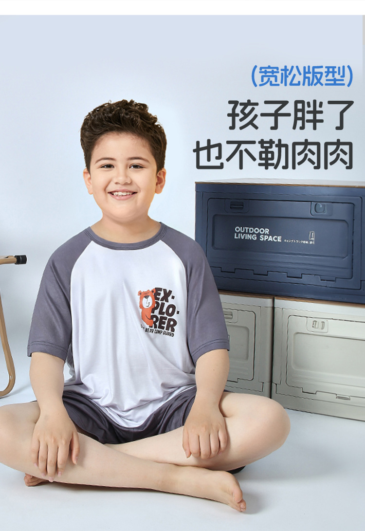 남아용 2025년 신상 여름 배색 잠옷 세트 플러스 사이즈 플러스 사이즈 대형 아동용 에어컨 의류 투피스 세트스토어 가기