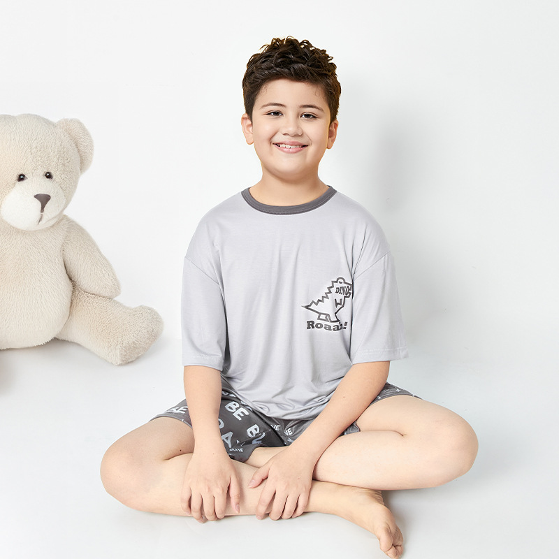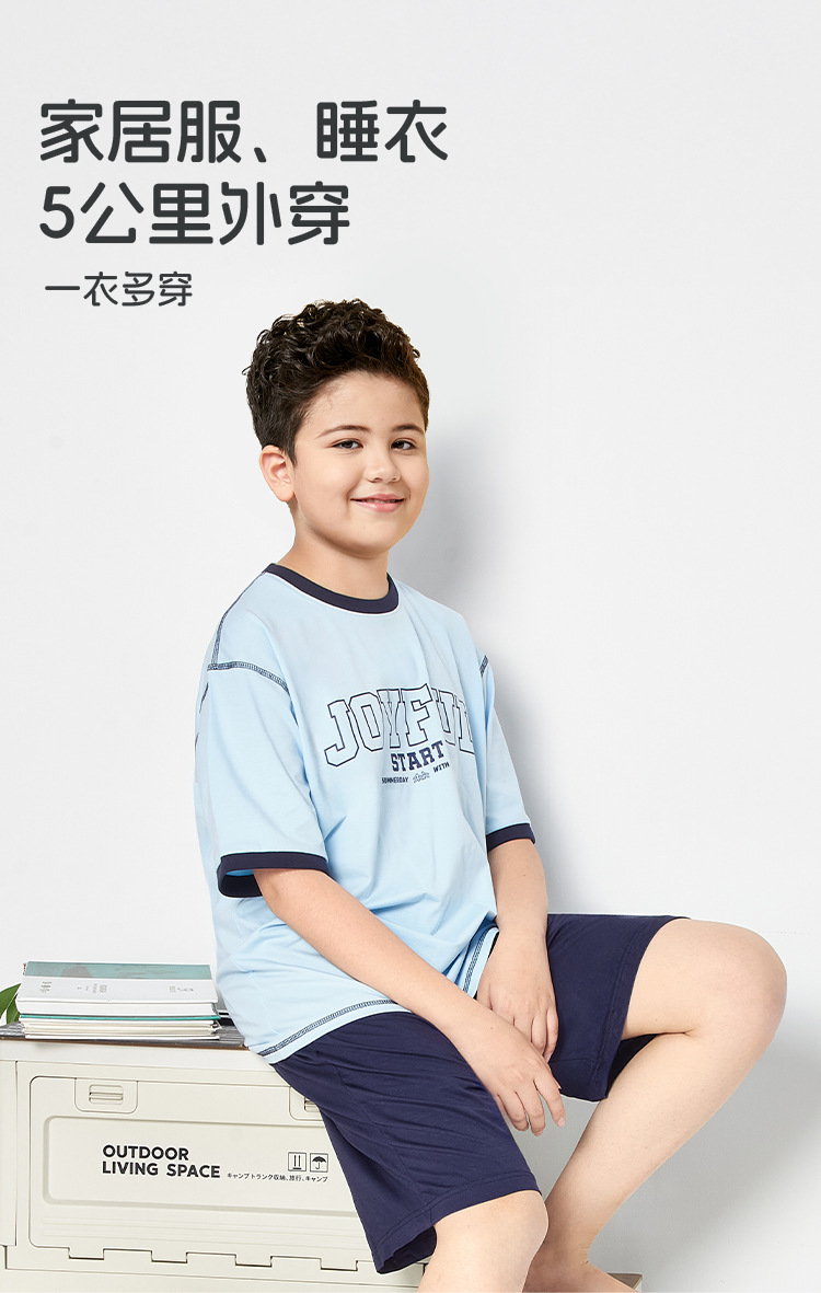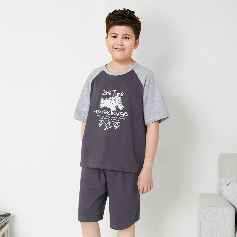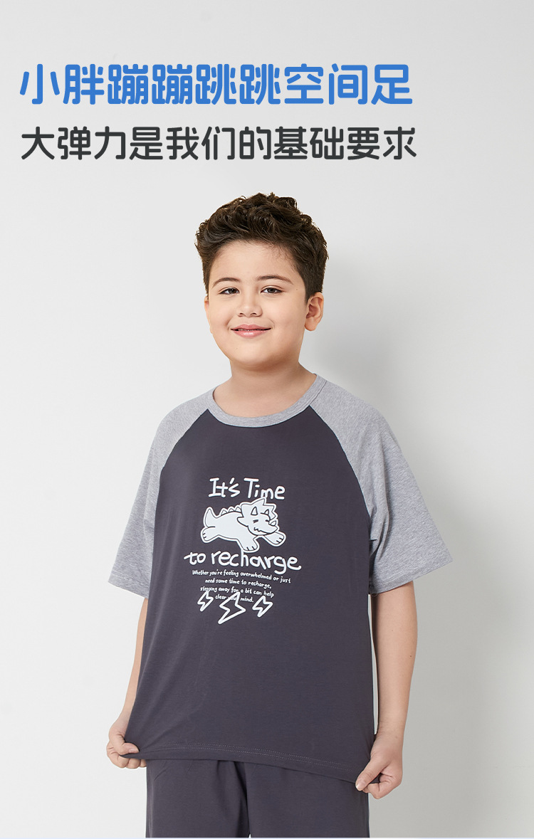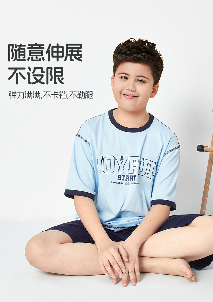 남아용 2025년 신상 여름 배색 잠옷 세트 플러스 사이즈 플러스 사이즈 대형 아동용 에어컨 의류 투피스 세트스토어 가기