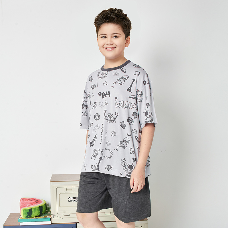 남아용 2025년 신상 여름 배색 잠옷 세트 플러스 사이즈 플러스 사이즈 대형 아동용 에어컨 의류 투피스 세트