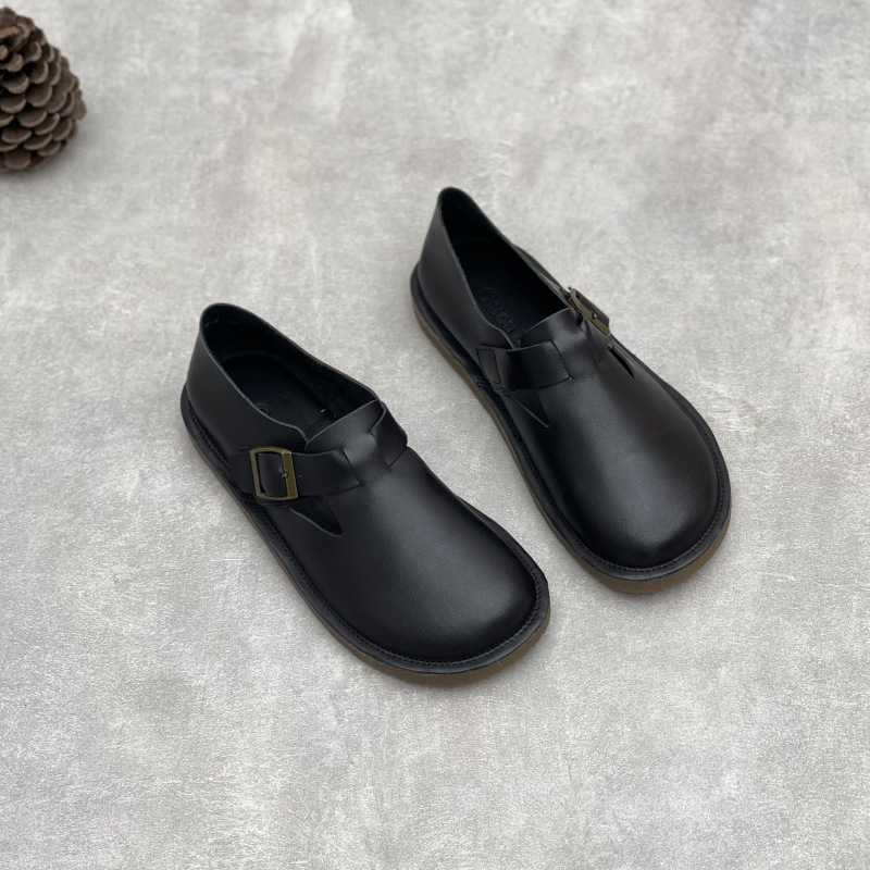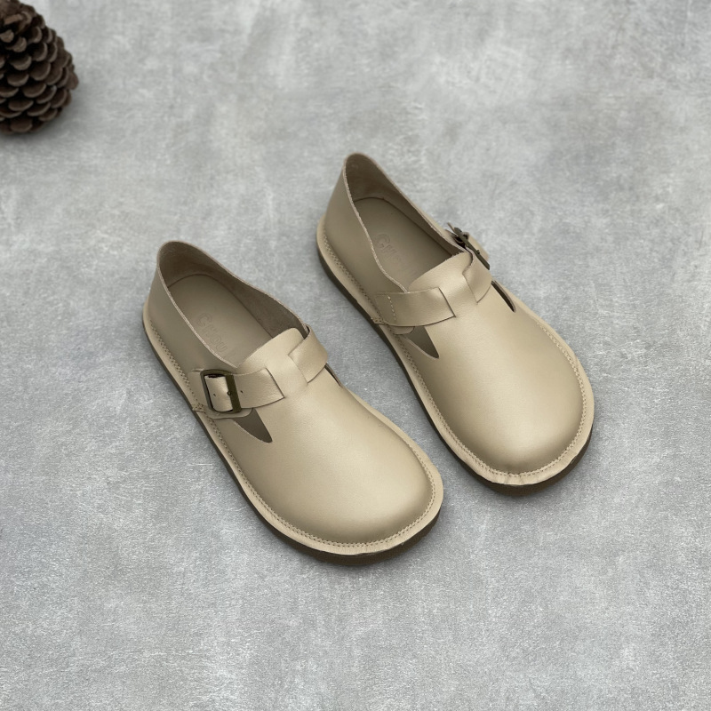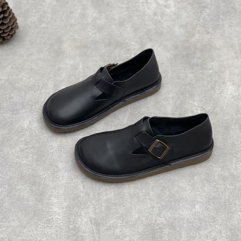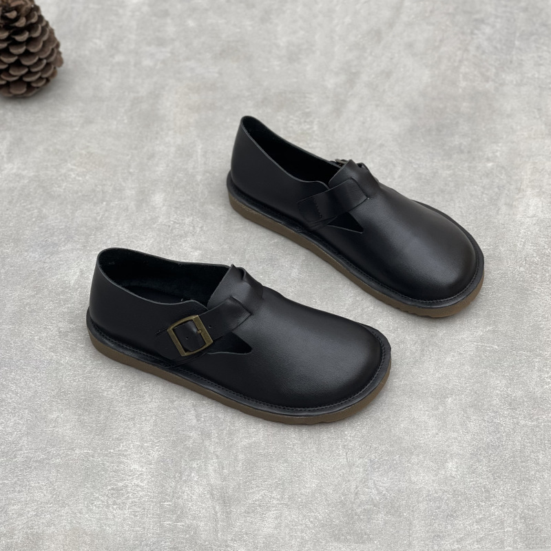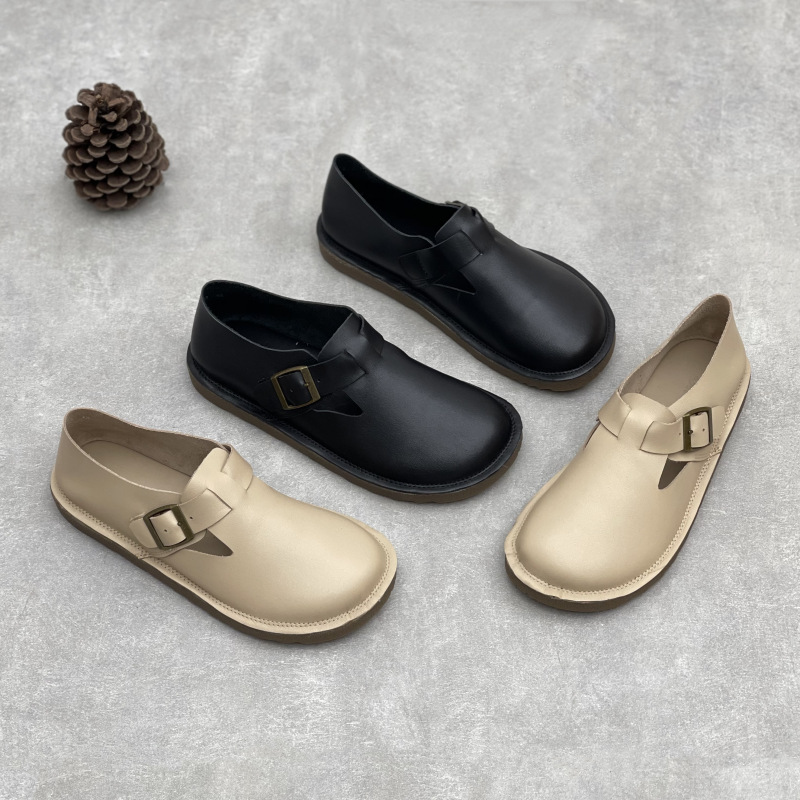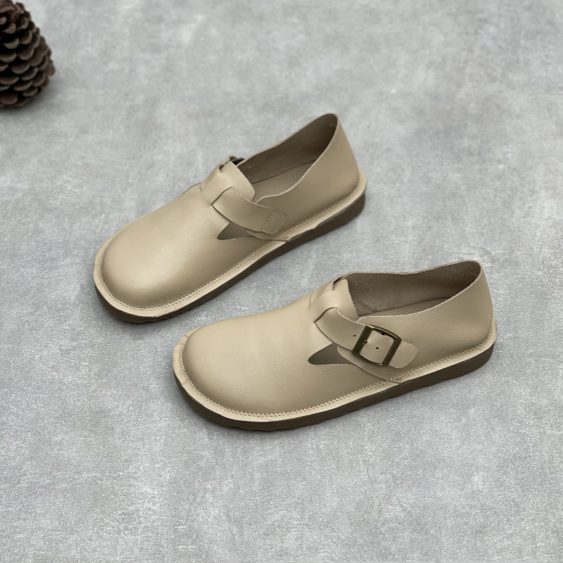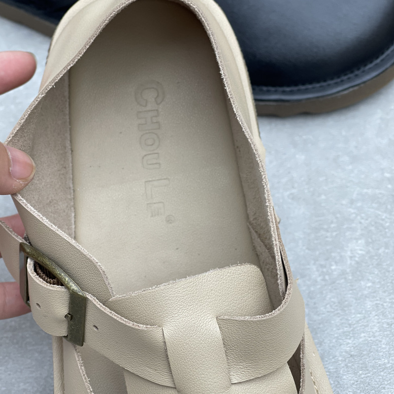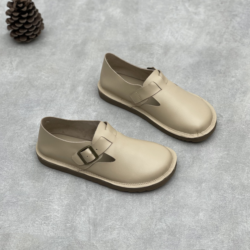 2025 년 여름 새로운 도착 수제 정품 가죽 의류 슈퍼 소프트 하단 두꺼운 단독 완두콩 Burken 소프트 Cowhide 여성용 신발