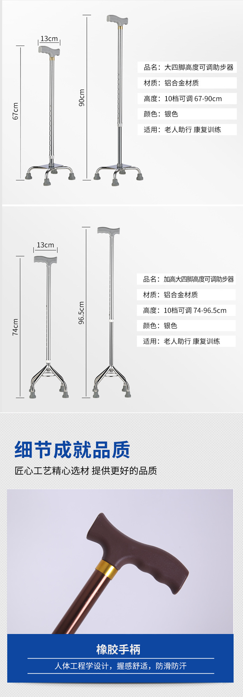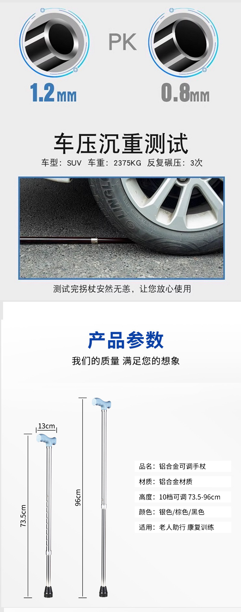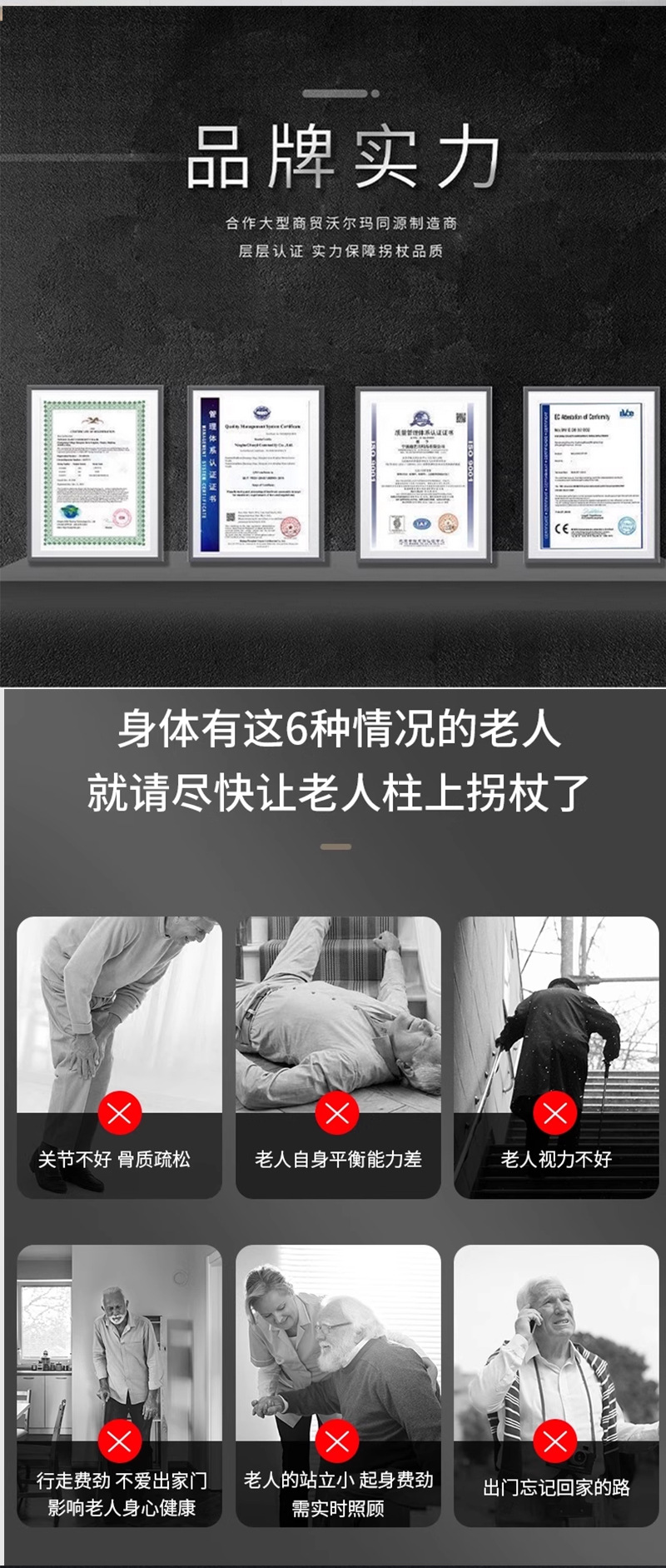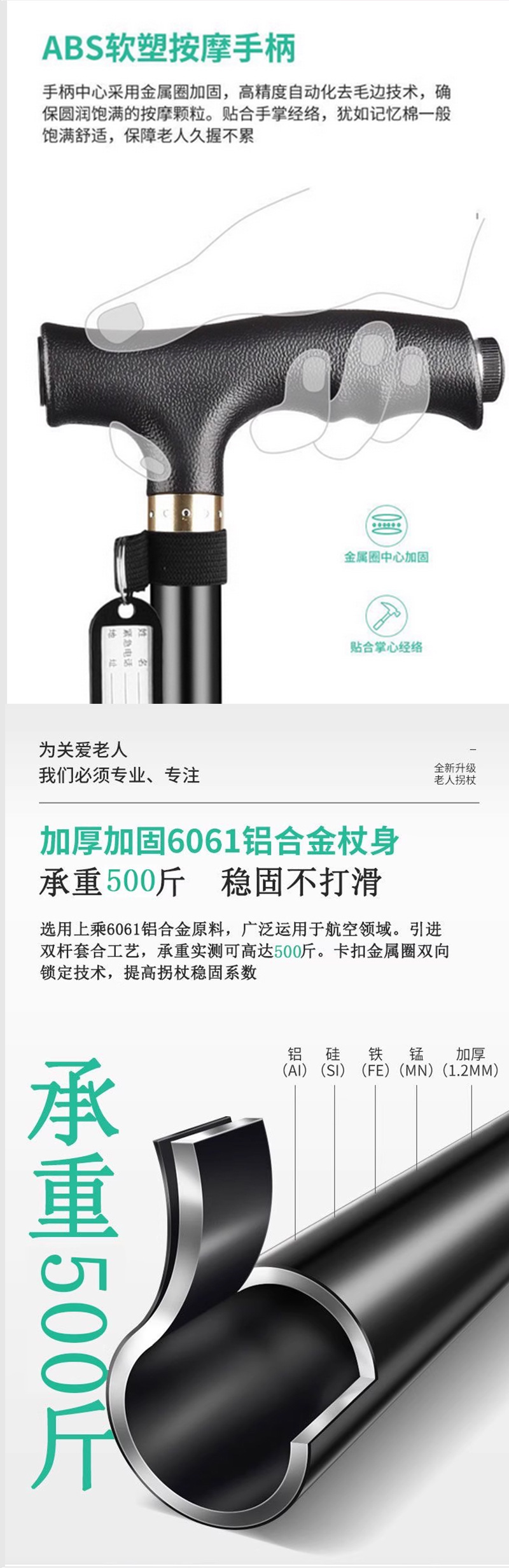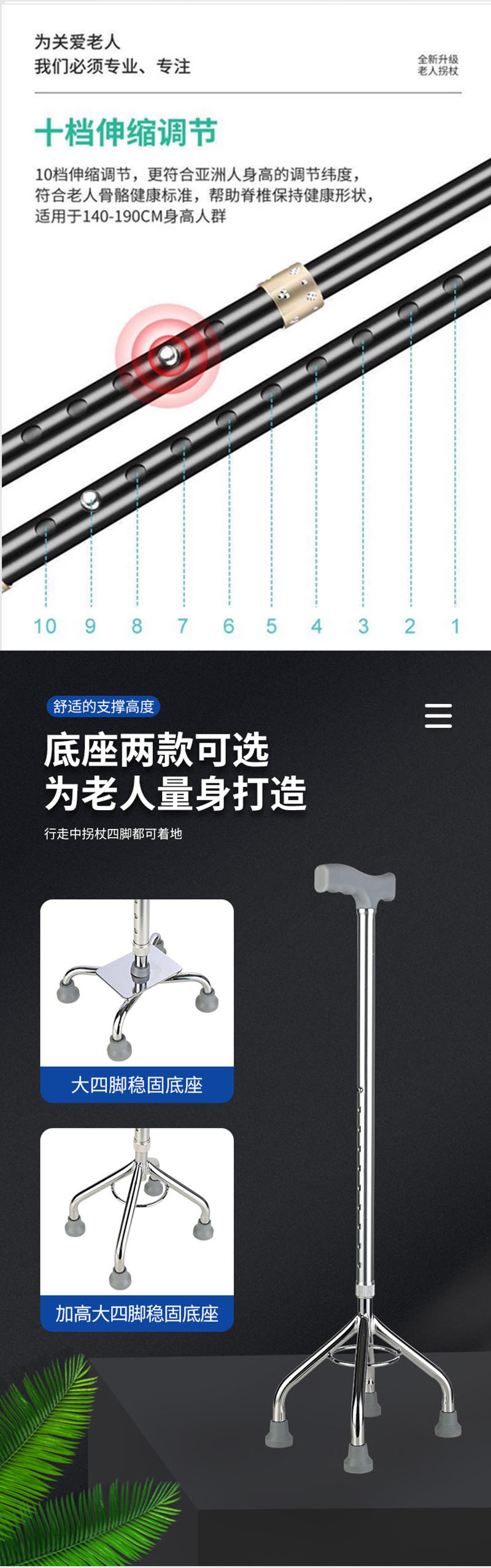노인용 지팡이, 알루미늄 합금 접이식 지팡이, 미끄럼 방지 및 낙하 방지 지팡이, 고저 그램 텔레스코픽 조절 노인 보행 지팡이
