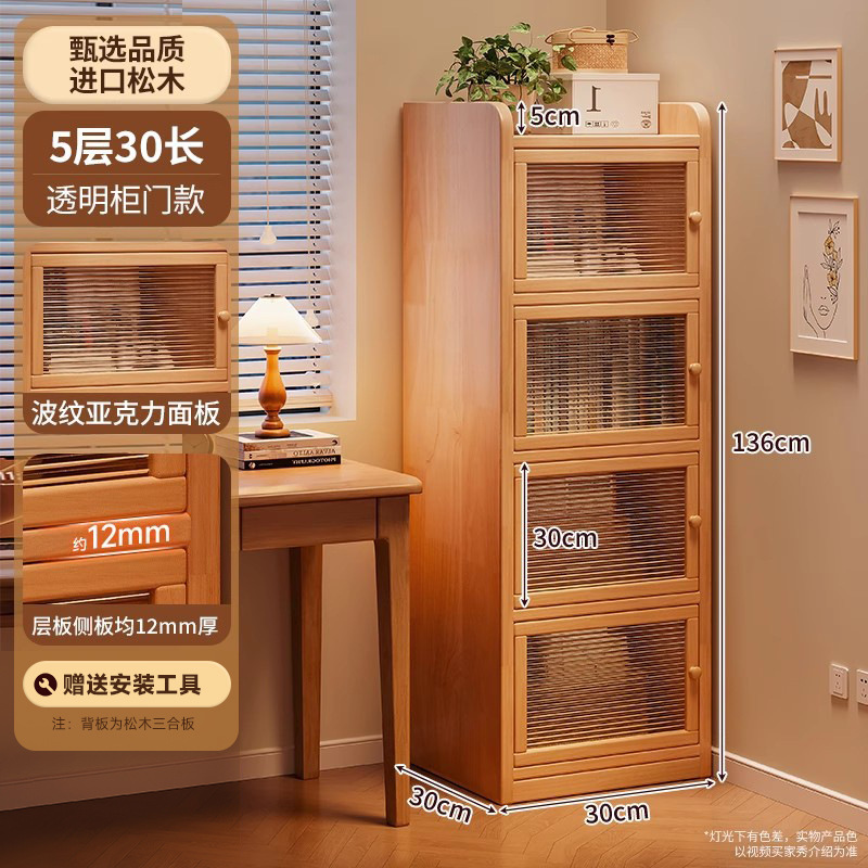 • [아크릴 캐비닛 도어 모델] 모든 원목으로 업그레이드 [5겹 30cm] 12MM 수입 무도장 소나무