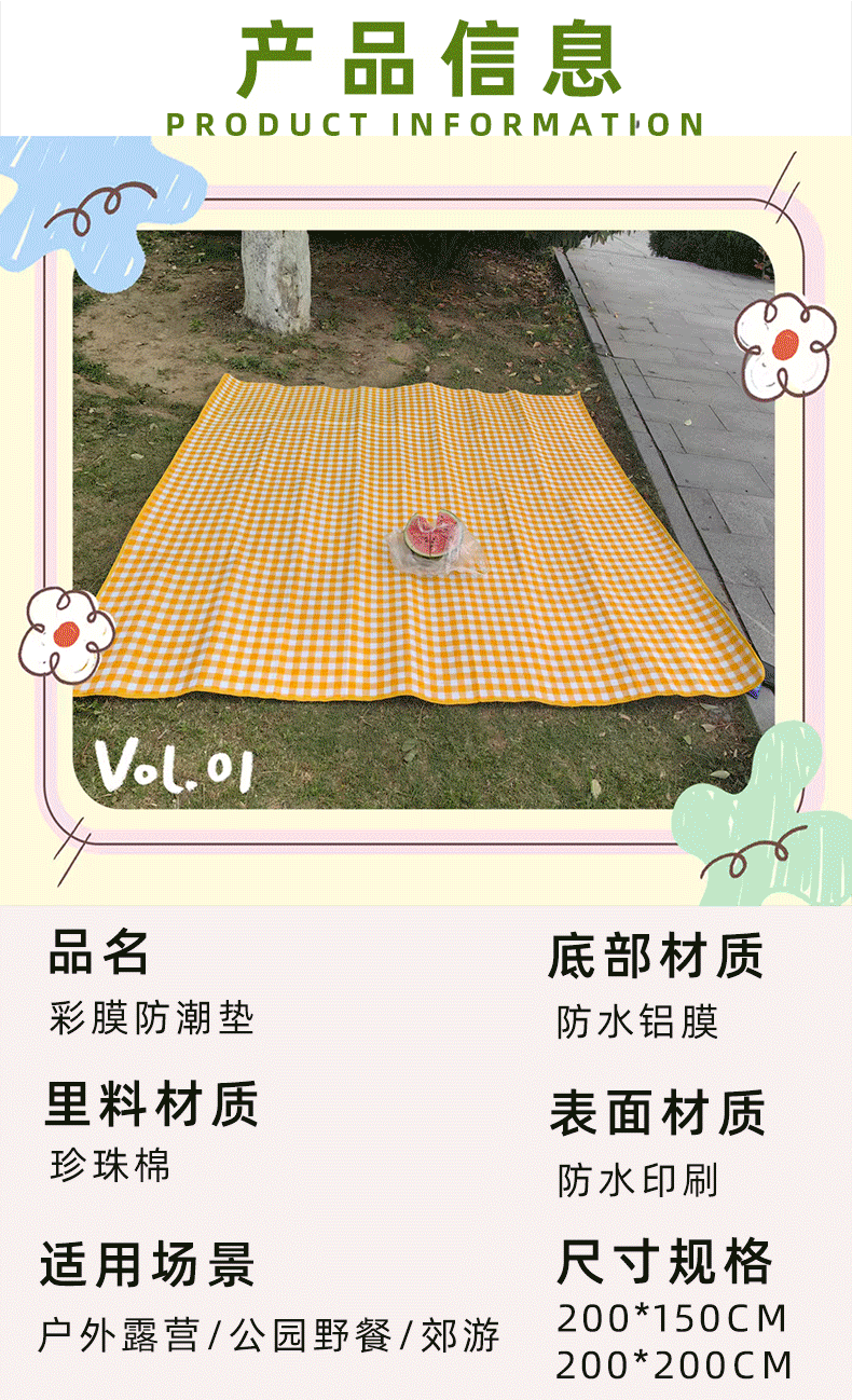 피크닉 매트 야외 컬러 필름 습기 방지 매트 두꺼운 알루미늄 필름 텐트 매트 방수 캠핑 피크닉 매트 봄 나들이 잔디 매트스토어 가기