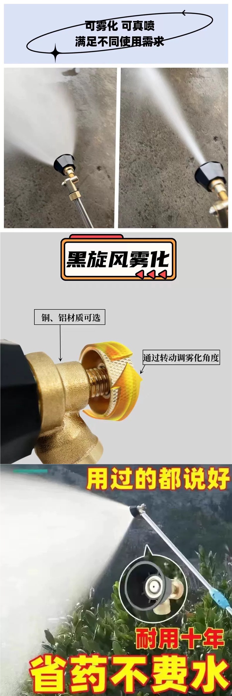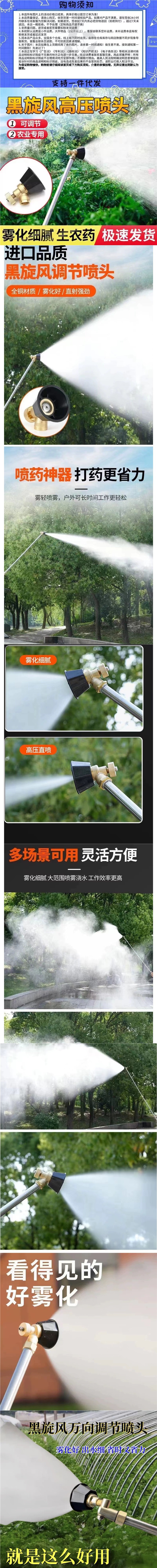 검은 회오리 바람 분무 스프레이 노즐 농업 고압 조정 가능한 순수 구리 노즐 방풍 조정 가능한 모터 분무기스토어 가기