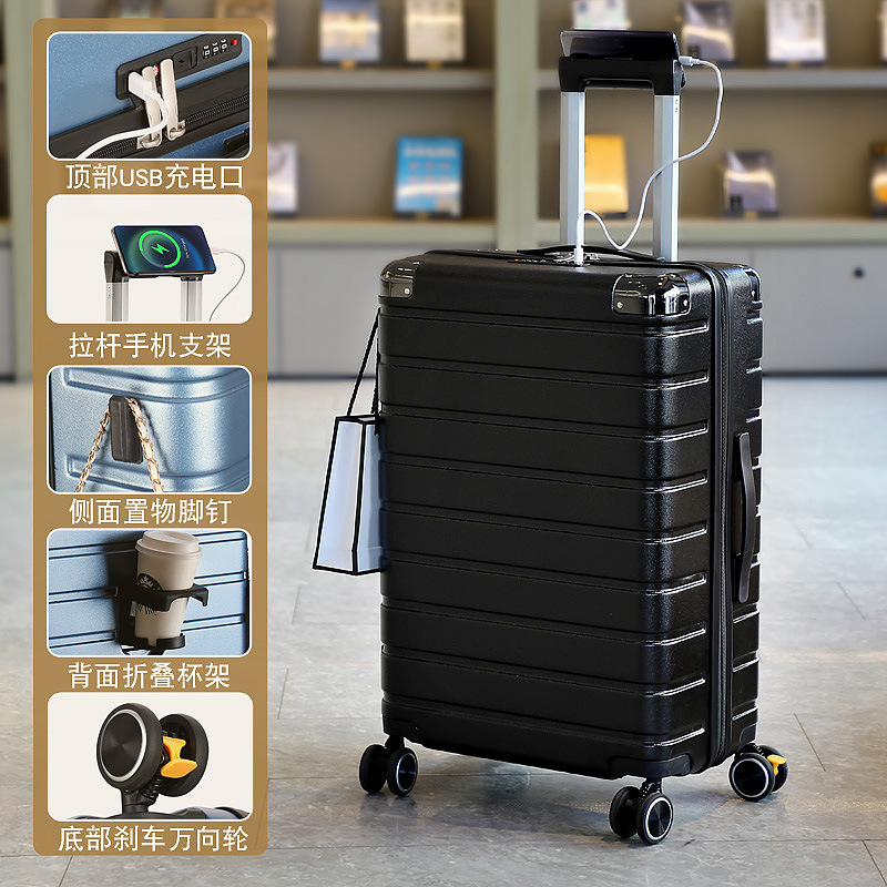 지퍼 수하물 내마모성 폭발 방지 암호 상자 지퍼 박스 브레이크 유니버설 휠 더블 폐쇄 수하물 케이스