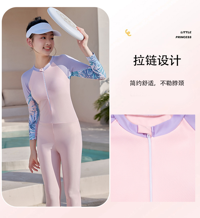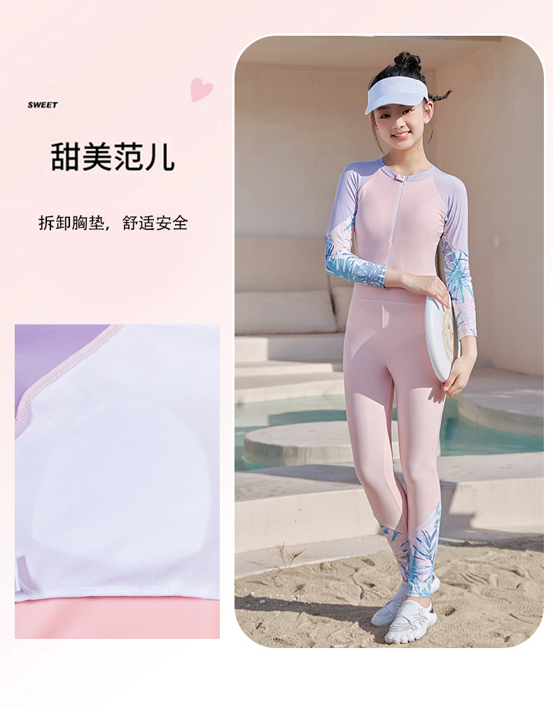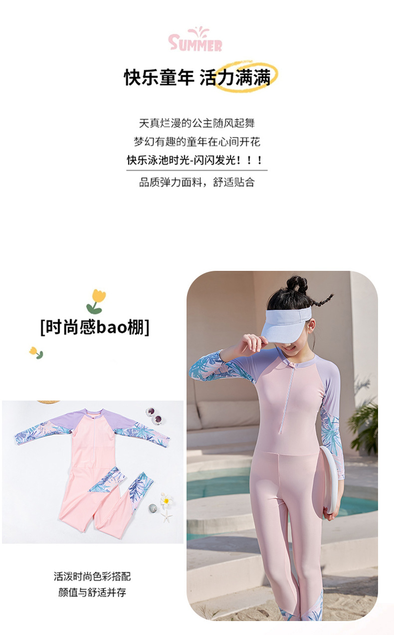 어린이 수영복 소녀 소형, 중형 및 대형 소녀 새로운 자외선 차단 여름 수영복 원피스 긴팔 바지 수영복 도매