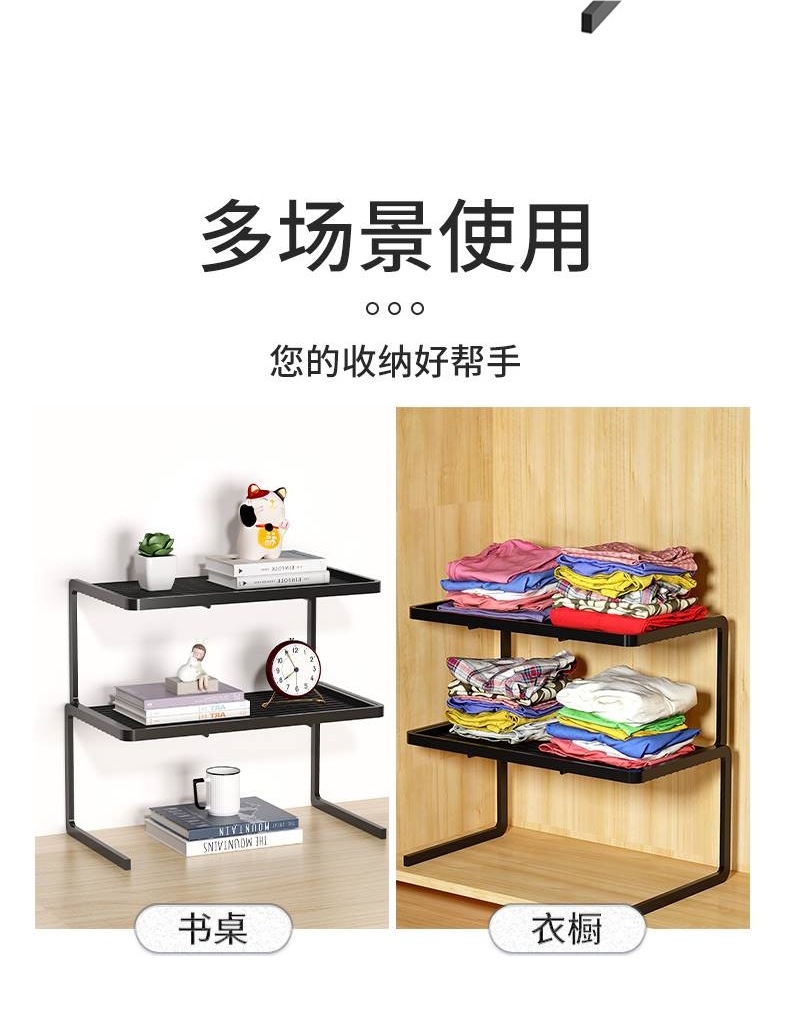 캐비닛 계층형 선반 주방 냄비 선반 스토브 식기 보관 선반 싱크대 아래 이중 냄비, 분리 선반스토어 가기