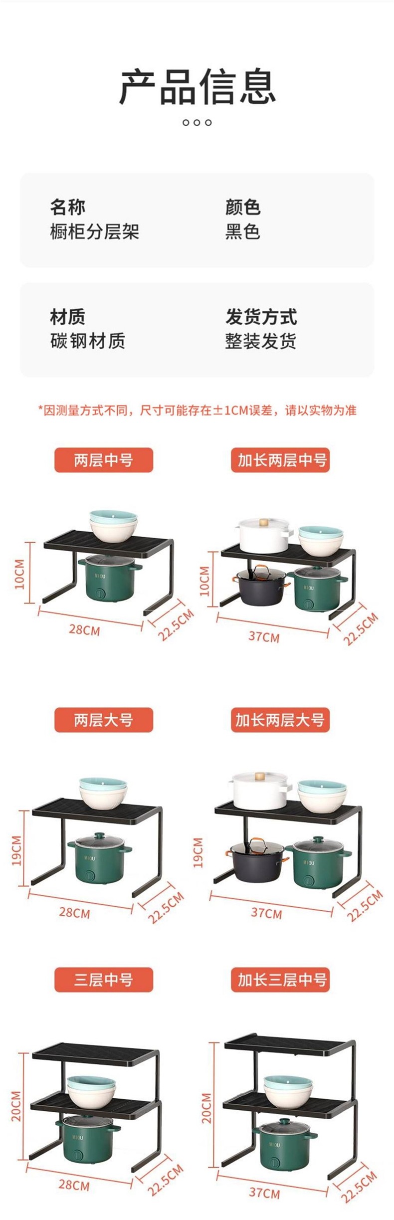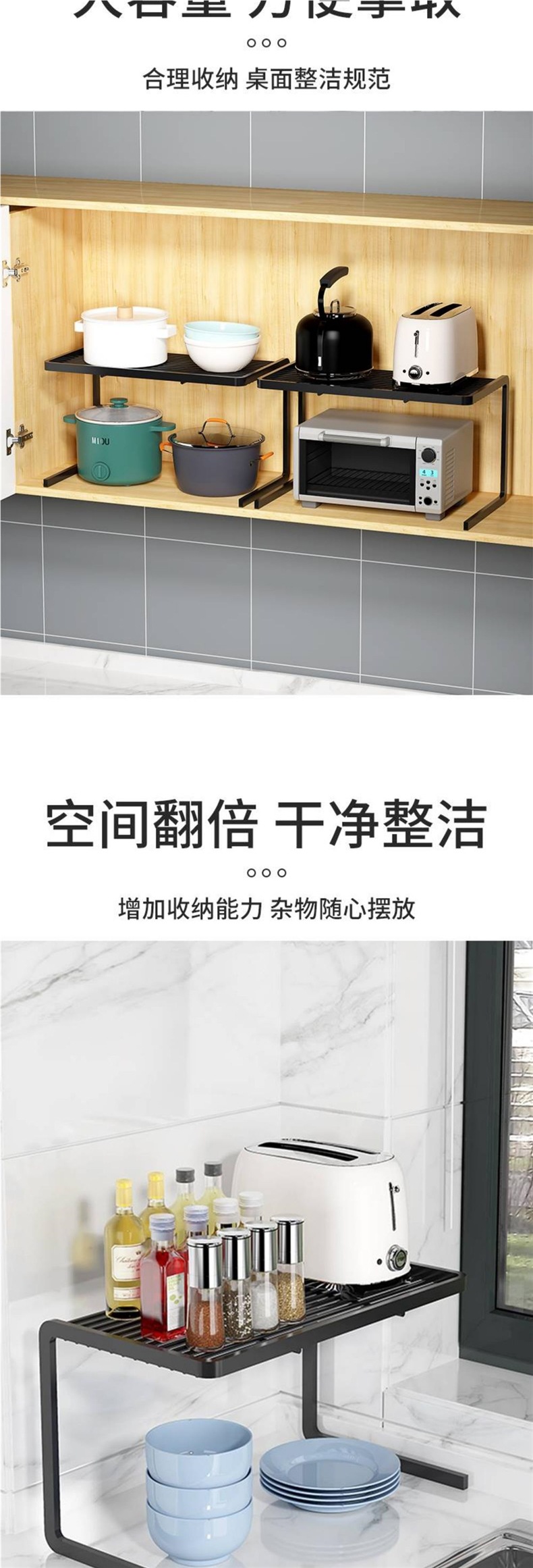캐비닛 계층형 선반 주방 냄비 선반 스토브 식기 보관 선반 싱크대 아래 이중 냄비, 분리 선반