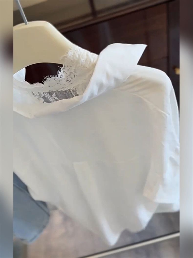 "새로운 패션을 잠금 해제하고 쌓아 올리세요" 여성용 고급 다용도 화이트 레이스 스플라이스 셔츠, 우아한 틈새 상의