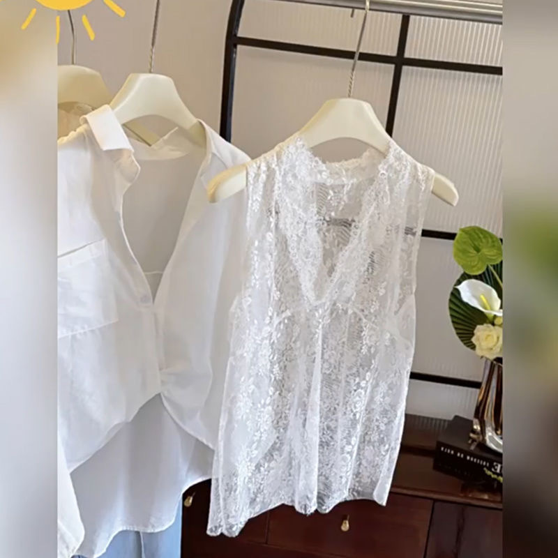 • 셔츠+레이스조끼 [투피스세트]