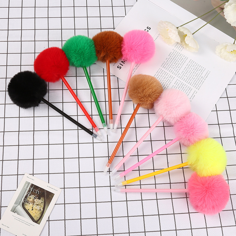 간단하고 창의적인 플라스틱 헤어 볼펜, 귀여운 소녀 하트 펜, 학생 쓰기 문구, 플러시 볼펜 도매스토어 가기