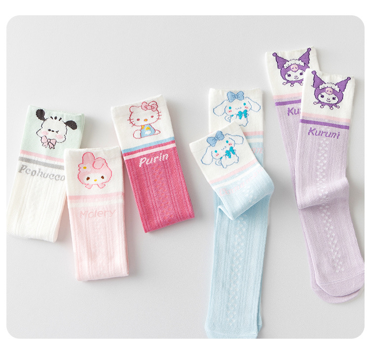 맞춤형 여아 스타킹, 여름용 얇은 면 양말, 메쉬 통기성 아동용 양말, A급 모기 방지 종아리 양말