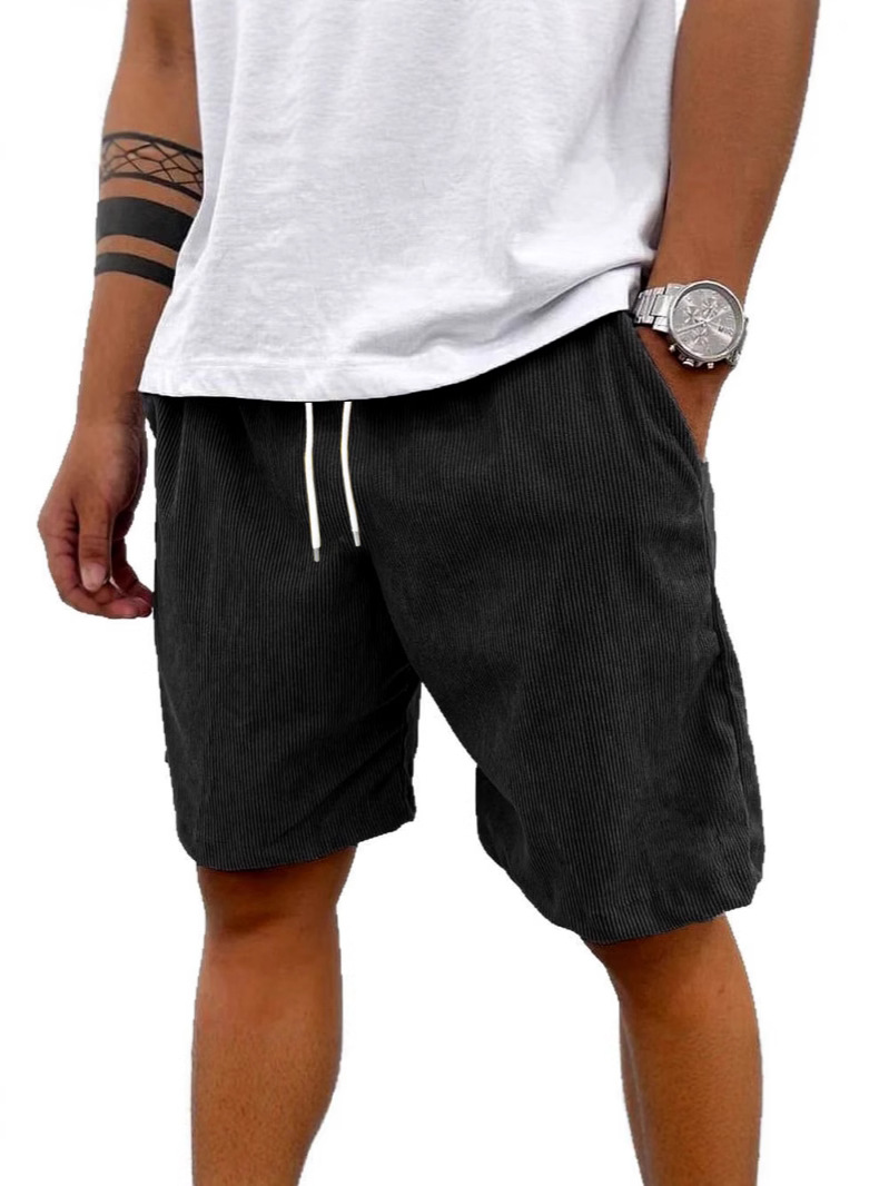 유럽과 미국의 새로운 아마존 독립 스테이션 레트로 코듀로이 남자 솔리드 컬러 스포츠 바지 5 점 캐주얼 루즈 반바지