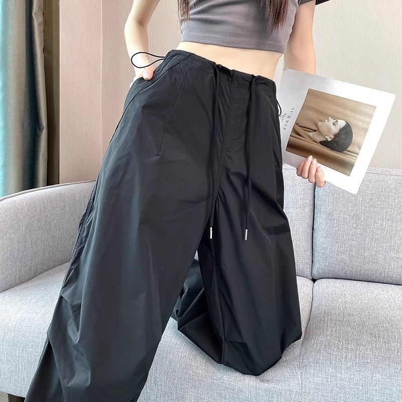 여성용 아메리칸 스타일 속건성 작업복, 여름 로우 웨이스트 드로스트링 디자인, 투웨어 레깅스 스웨트팬츠, 루즈 캐주얼 하이킹 팬츠스토어 가기