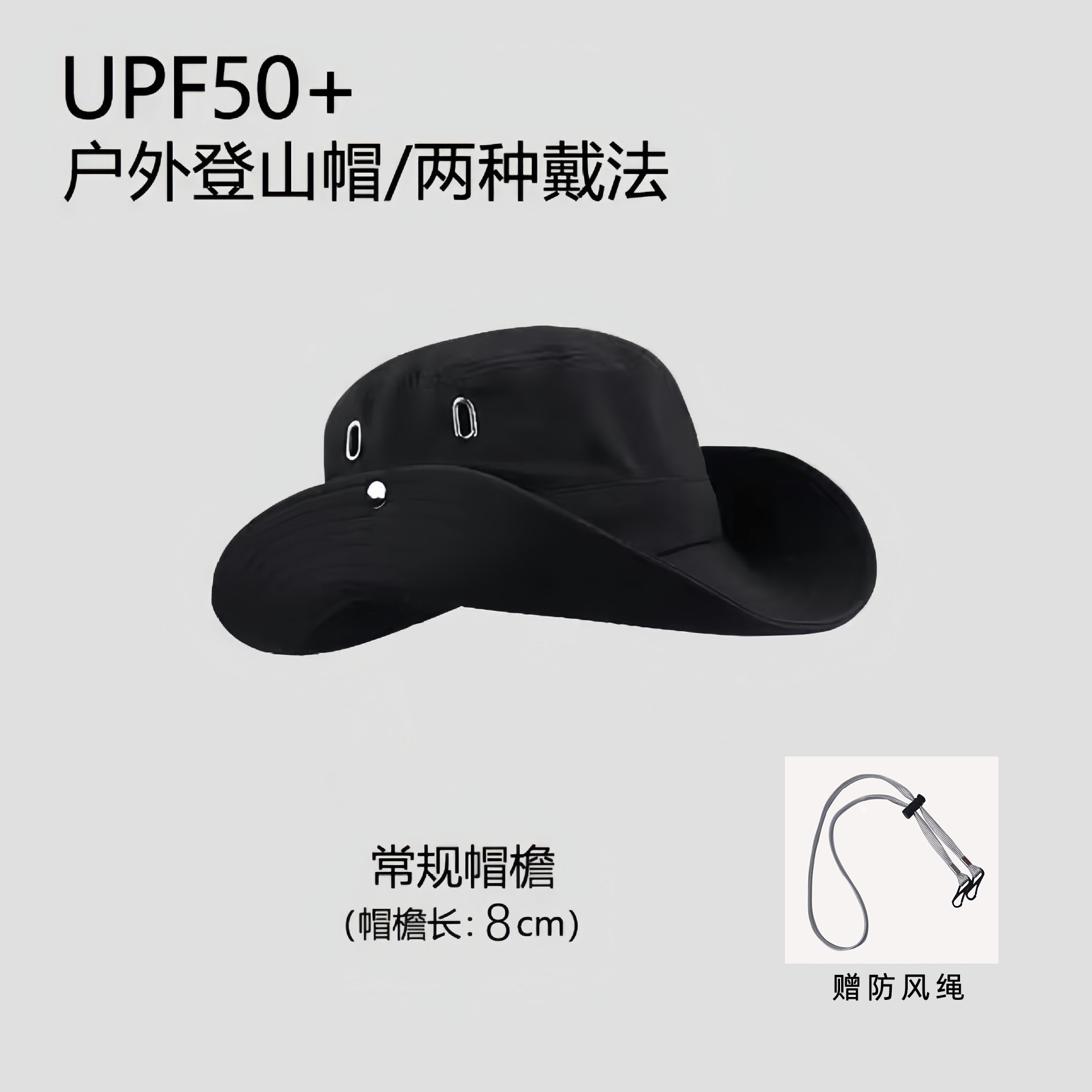 • 속건 카우보이 모자 [우아한 블랙] - 8CM 챙 (야외 자외선 차단용으로 보기 좋음)