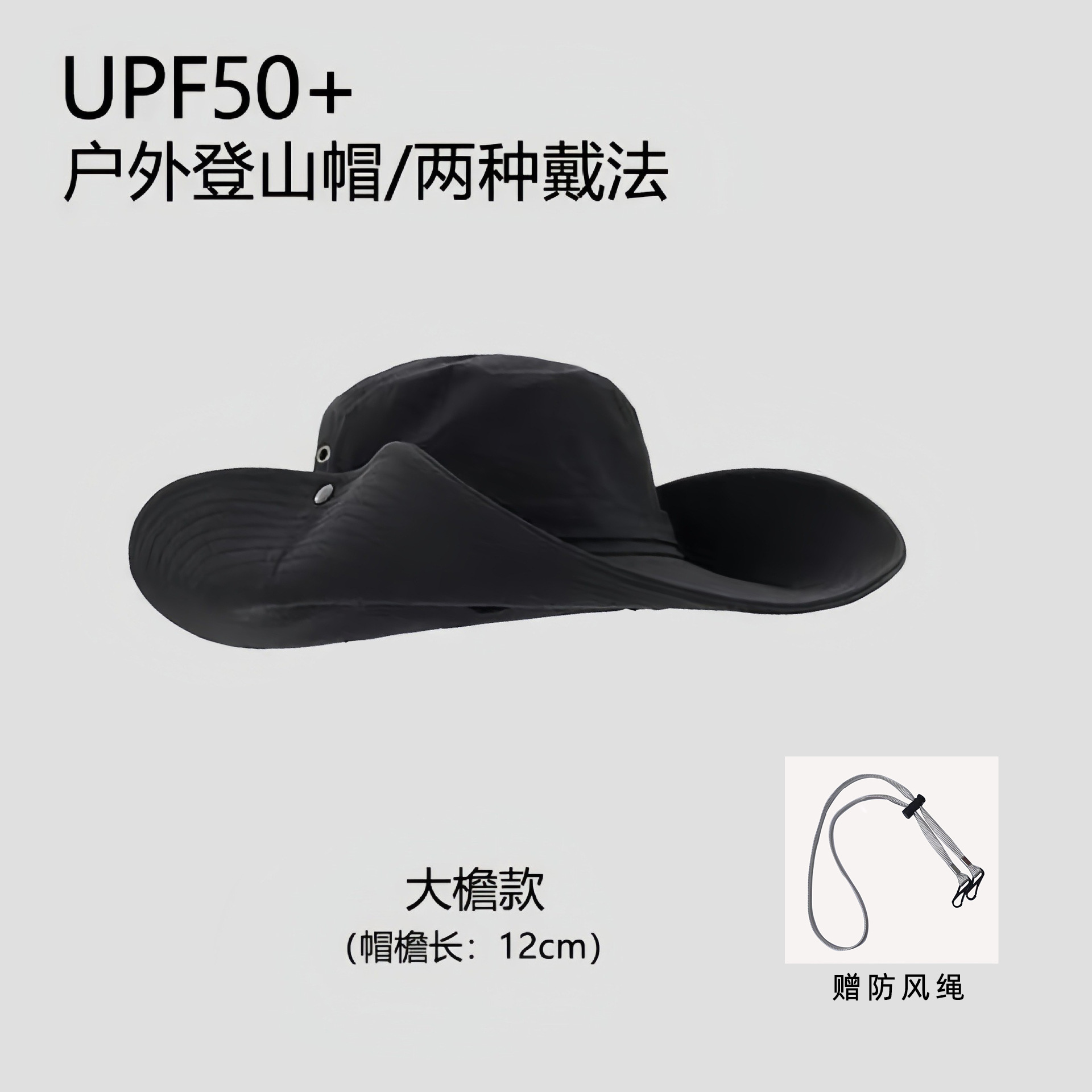 • 속건 카우보이 모자 [우아한 블랙] - 12CM 챙 (야외 자외선 차단용으로 활용도 높음)
