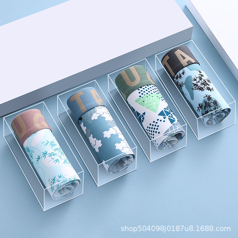 [4팩] 남성용 여름 복서 팬티, 남성용 미드 웨이스트 프린트 속옷, 남성용 통기성 아이스 실크 속옷스토어 가기