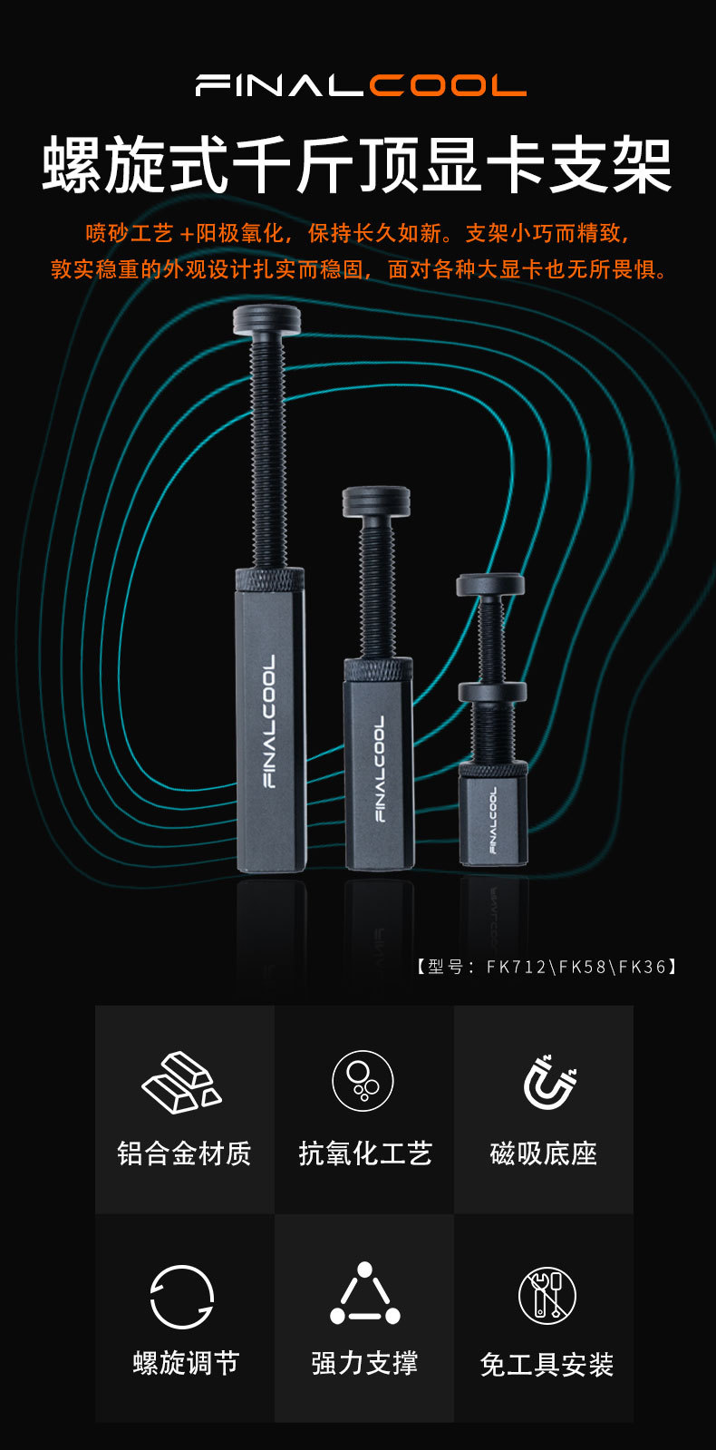 Hanche 그래픽 카드 스탠드 수직 확장형 0kg 탑 씬 룸 전체 알루미늄 자기 조절식 지지대
