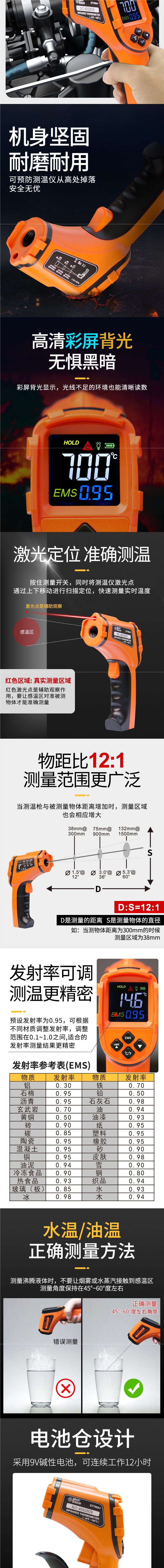 Xima AS700 적외선 온도계 베이킹 및 튀김 주방 상업용 오일 온도 총 온도 총 산업용 고정밀스토어 가기