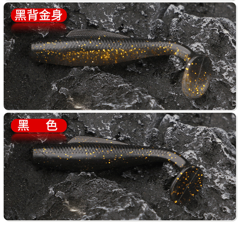 국경 간 떠 다니는 물 Luya 부드러운 미끼 TPR 슈퍼 소프트 T-테일 생체 공학 물고기 미끼 가짜 미끼 낚시 그룹 퍼치 만다린 물고기 검은 구덩이 1