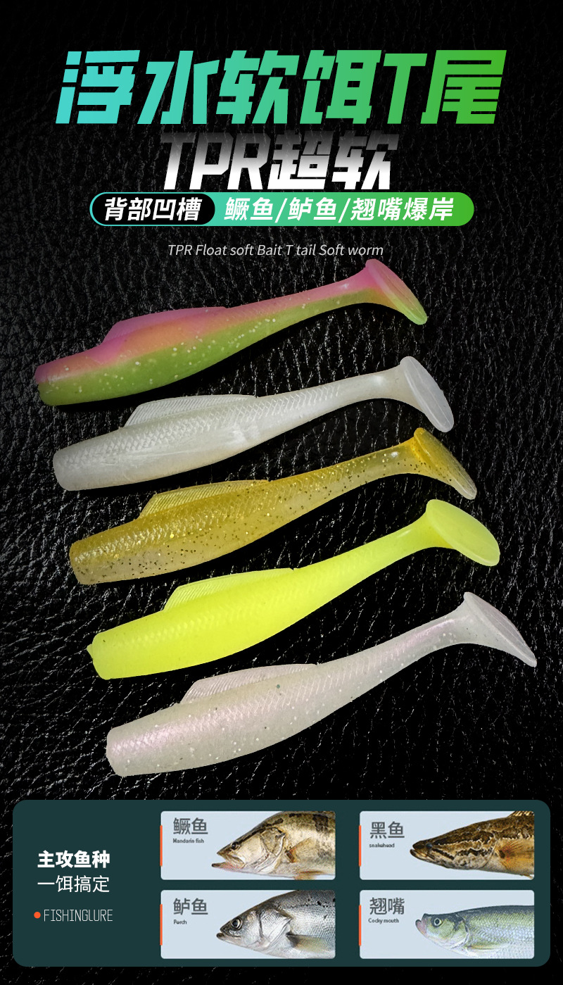 국경 간 떠 다니는 물 Luya 부드러운 미끼 TPR 슈퍼 소프트 T-테일 생체 공학 물고기 미끼 가짜 미끼 낚시 그룹 퍼치 만다린 물고기 검은 구덩이 1스토어 가기