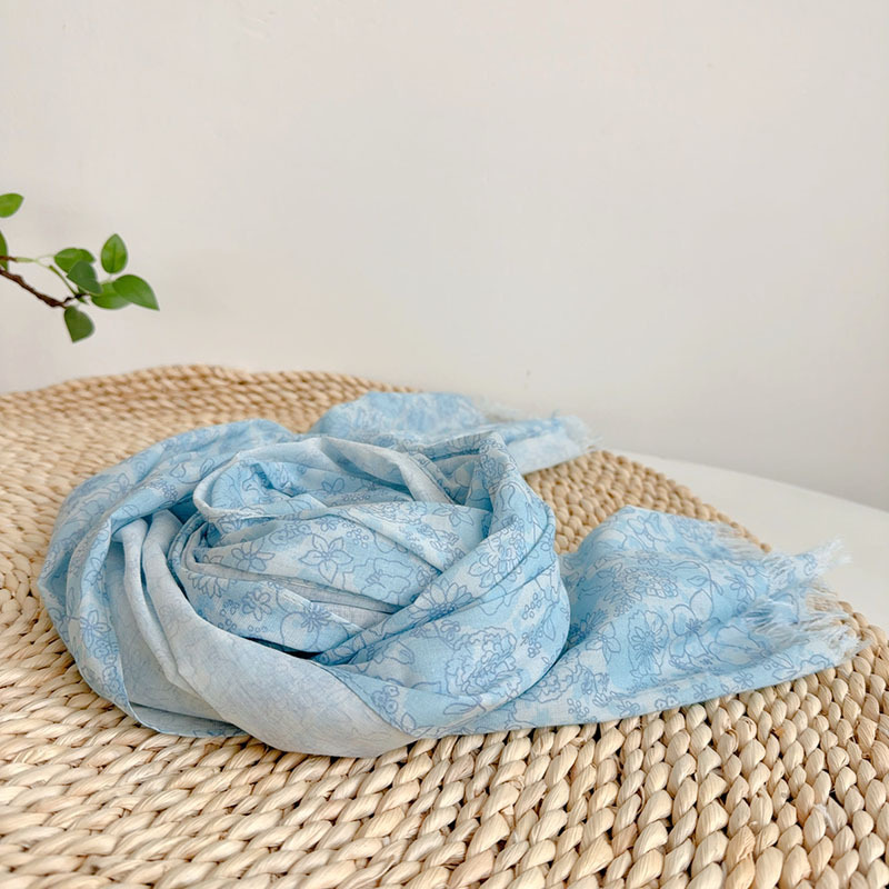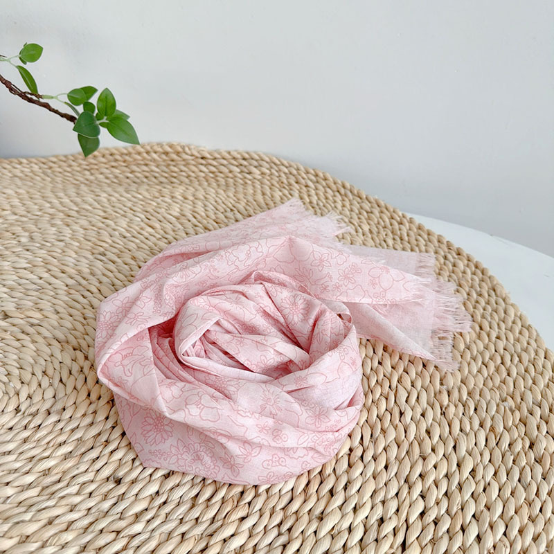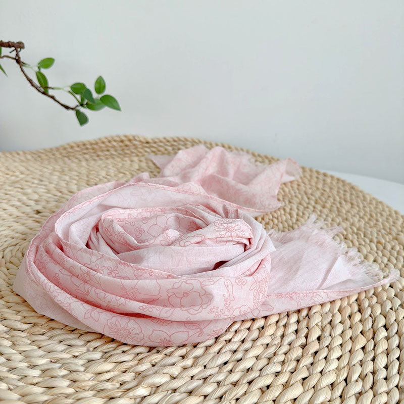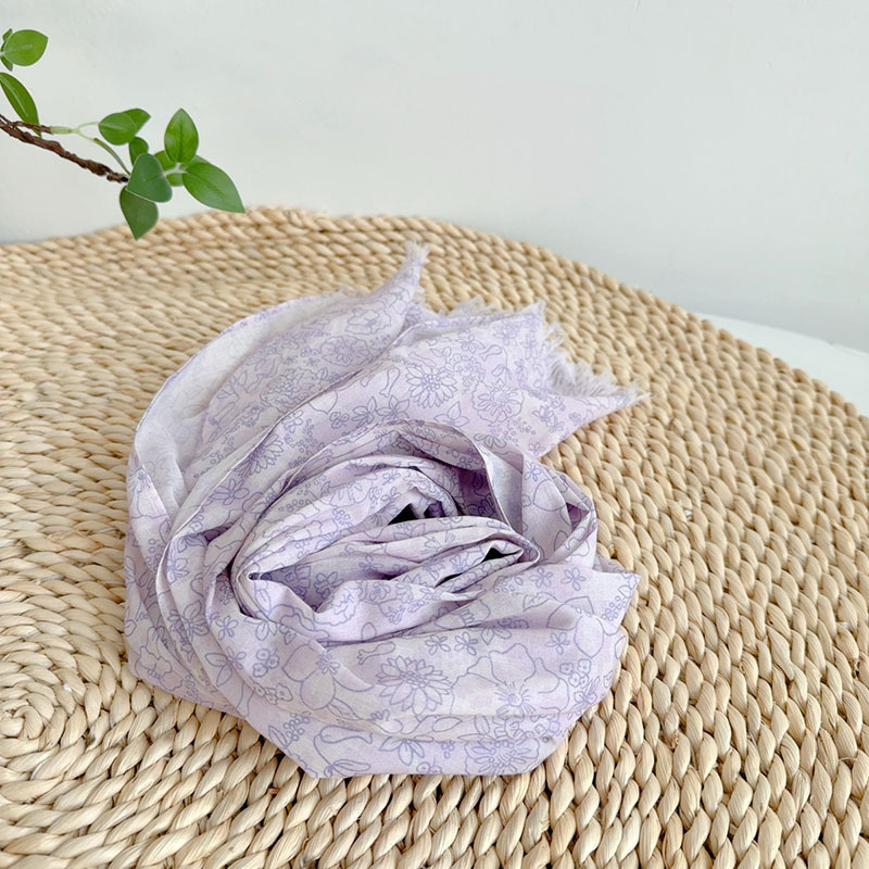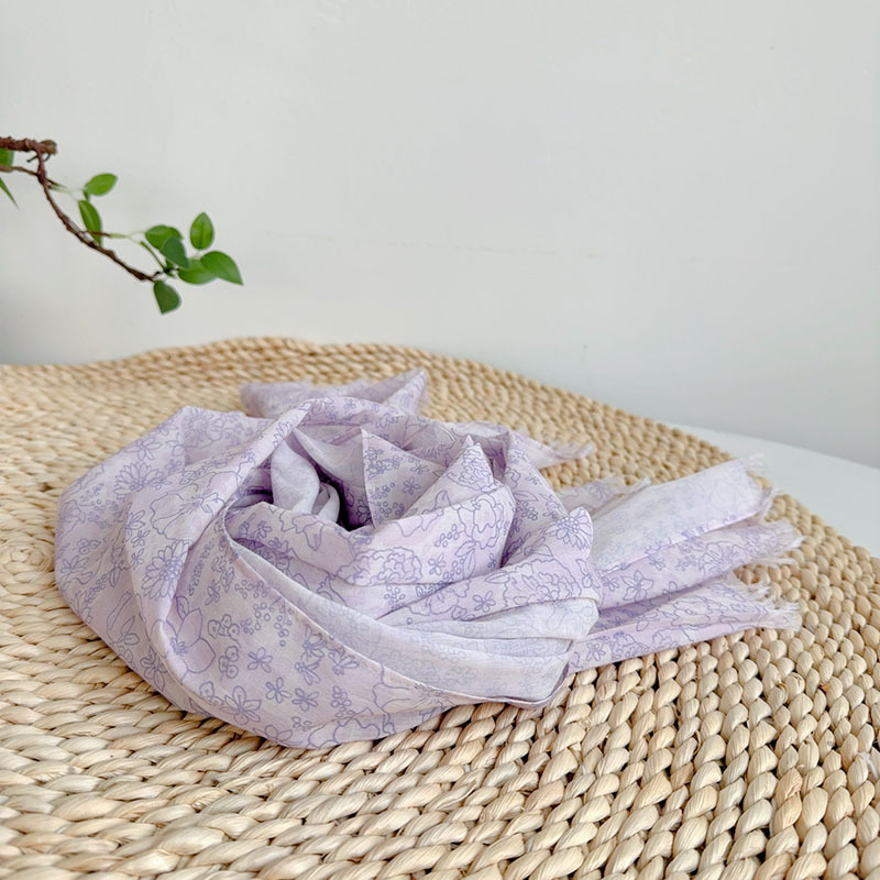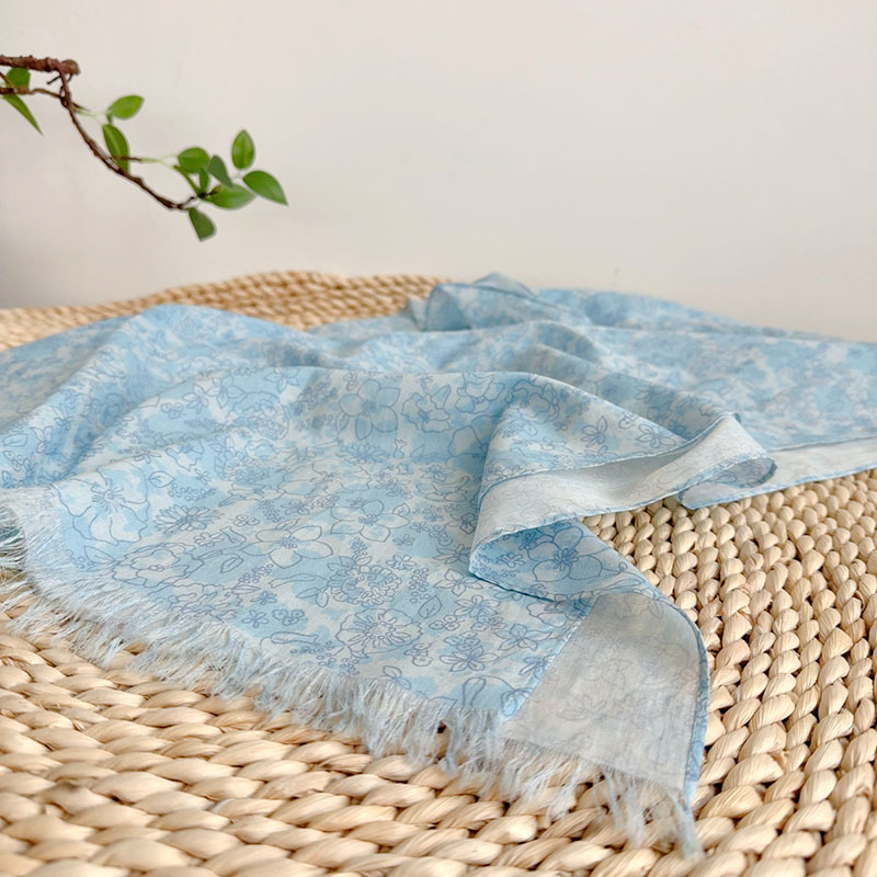 일본 수출 싱글 코튼 프린트 스카프 봄 여름 통기성 얇은 목 보호 실크 스카프 숄 클리어런스 특가스토어 가기