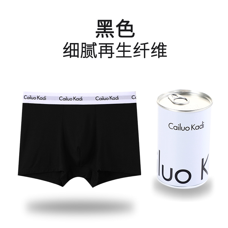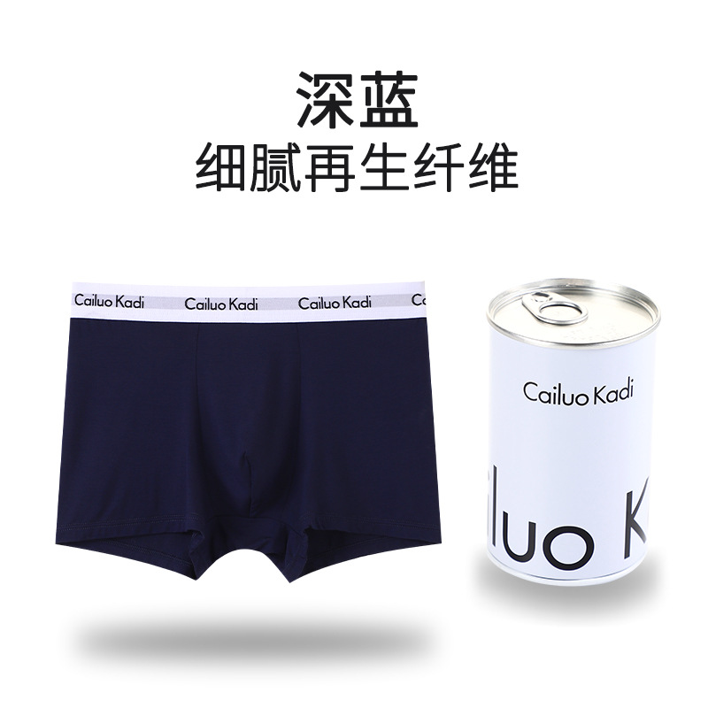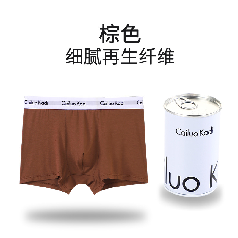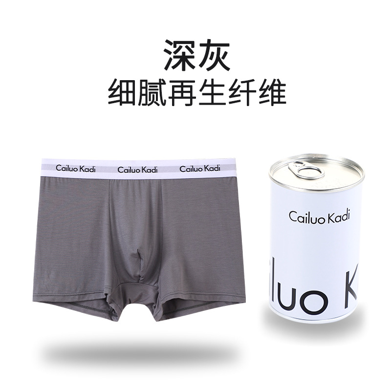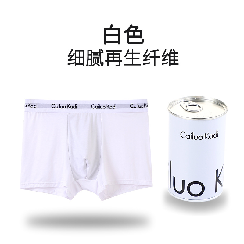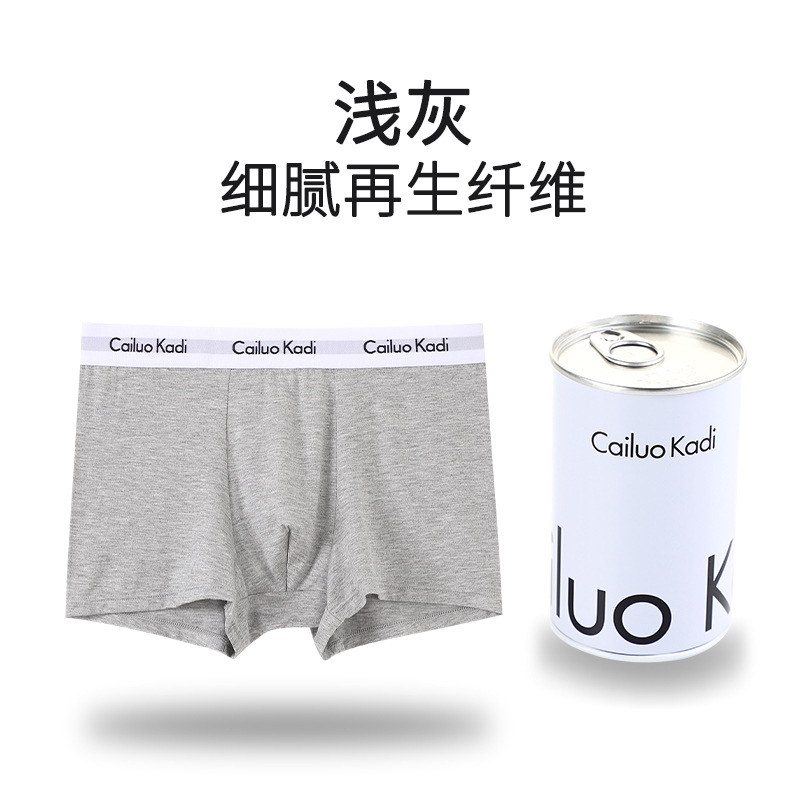 싱글 캔 남성 속옷 U 볼록 철 캔 포장 복서 팬티 청소년 중간 허리 사각형 코튼 통기성 속옷 남성 반바지스토어 가기