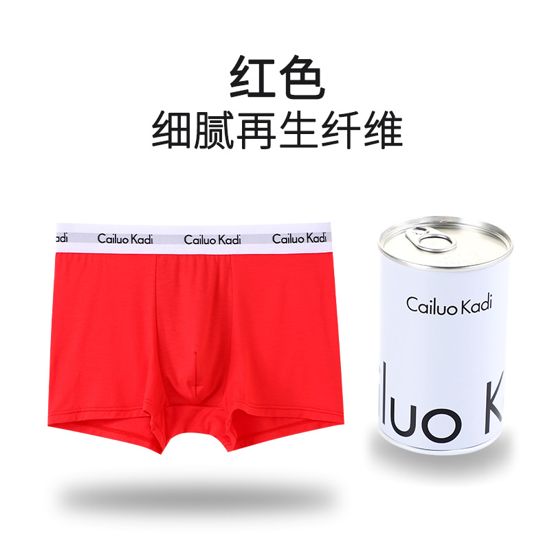 싱글 캔 남성 속옷 U 볼록 철 캔 포장 복서 팬티 청소년 중간 허리 사각형 코튼 통기성 속옷 남성 반바지