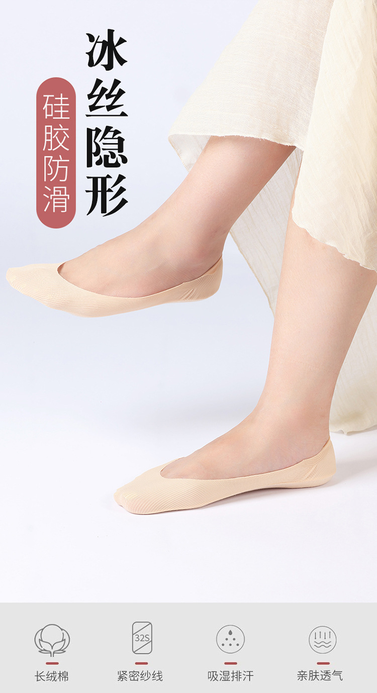 여름 얇은 보트 양말 여성용 아이스 실크 투명 양말 순면 밑창 실리콘 미끄럼 방지 끈 없는 짧은 양말 여성용 양말 맞춤 제작